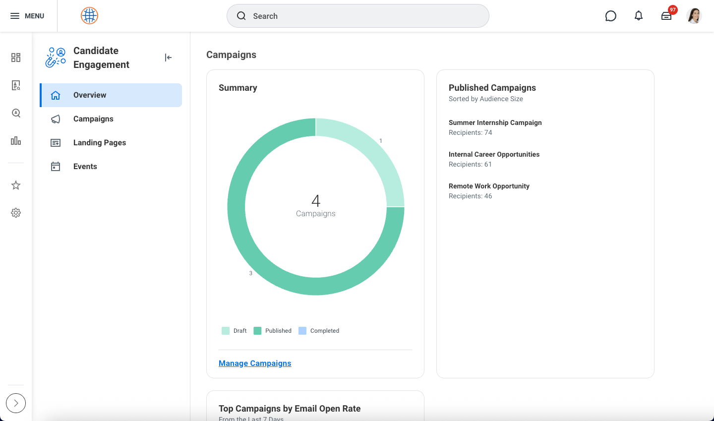 Workday Talent Acquisition unifica e trasforma l'assunzione su larga scala con una soluzione completa potenziata dall'IA. Le organizzazioni possono ripensare il reclutamento e migliorare le esperienze per i candidati automatizzando i programmi per trovare i migliori talenti e fornire esperienze personalizzate e semplificate che accelerano l'assunzione.