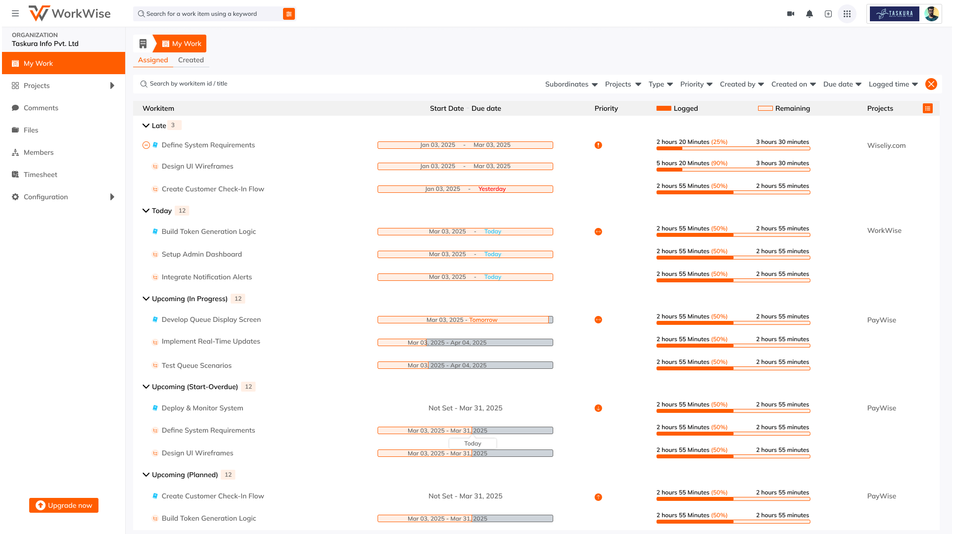 Con WorkWise, puoi creare e gestire facilmente attività, assegnare membri del team, impostare scadenze e monitorare i progressi in tempo reale attraverso flussi di lavoro personalizzabili. Le sue viste a bordo visivo e a cronologia rendono facile tracciare ciò che sta per arrivare, ciò che è in ritardo e ciò che è stato completato, aiutando i team a rimanere responsabili e produttivi.