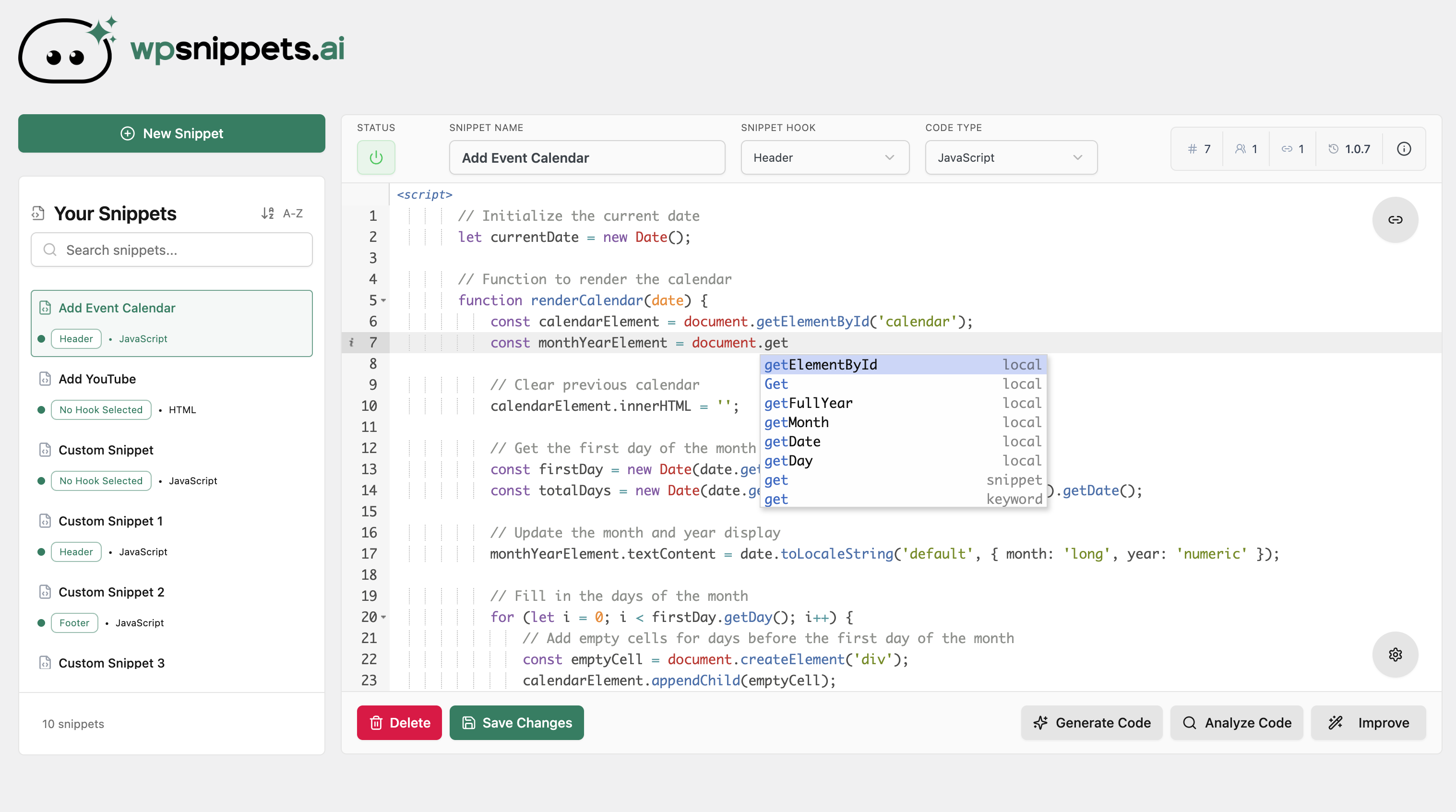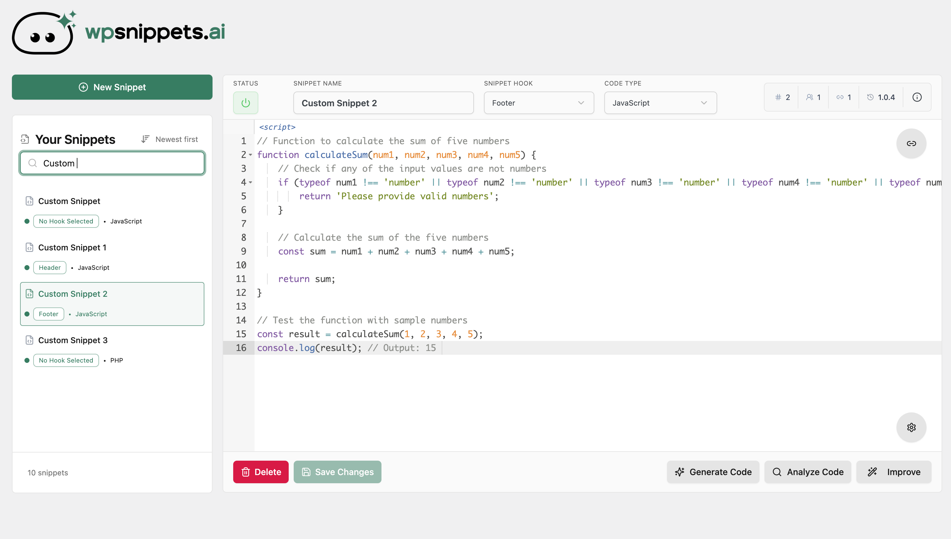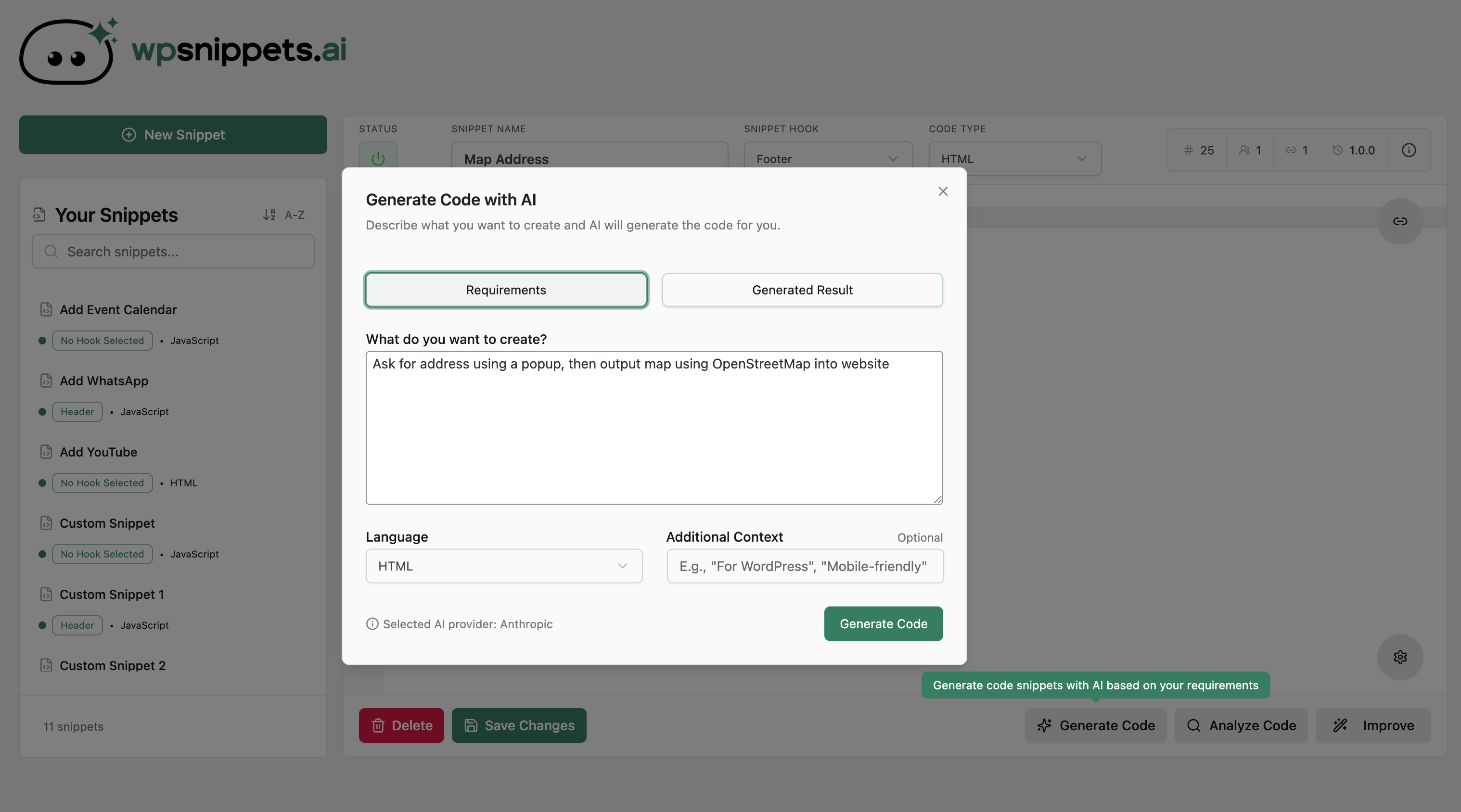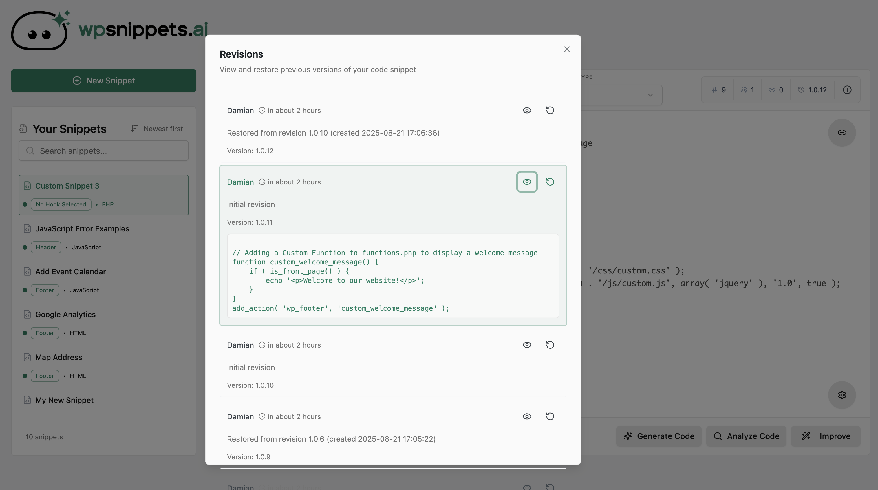 WP Snippets AI rende sorprendentemente facile generare e perfezionare piccoli frammenti di codice personalizzato all'interno di WordPress senza dover passare da uno strumento all'altro. Il costruttore di frammenti (AI) chat (Widget Elementor) comprende bene il contesto della pagina, e il gestore principale dei frammenti rende semplice spingere i frammenti al front end senza dover modificare i file del tema. Sembra veloce, affidabile e davvero utile per le modifiche quotidiane. Recensione raccolta e ospitata su G2.com.