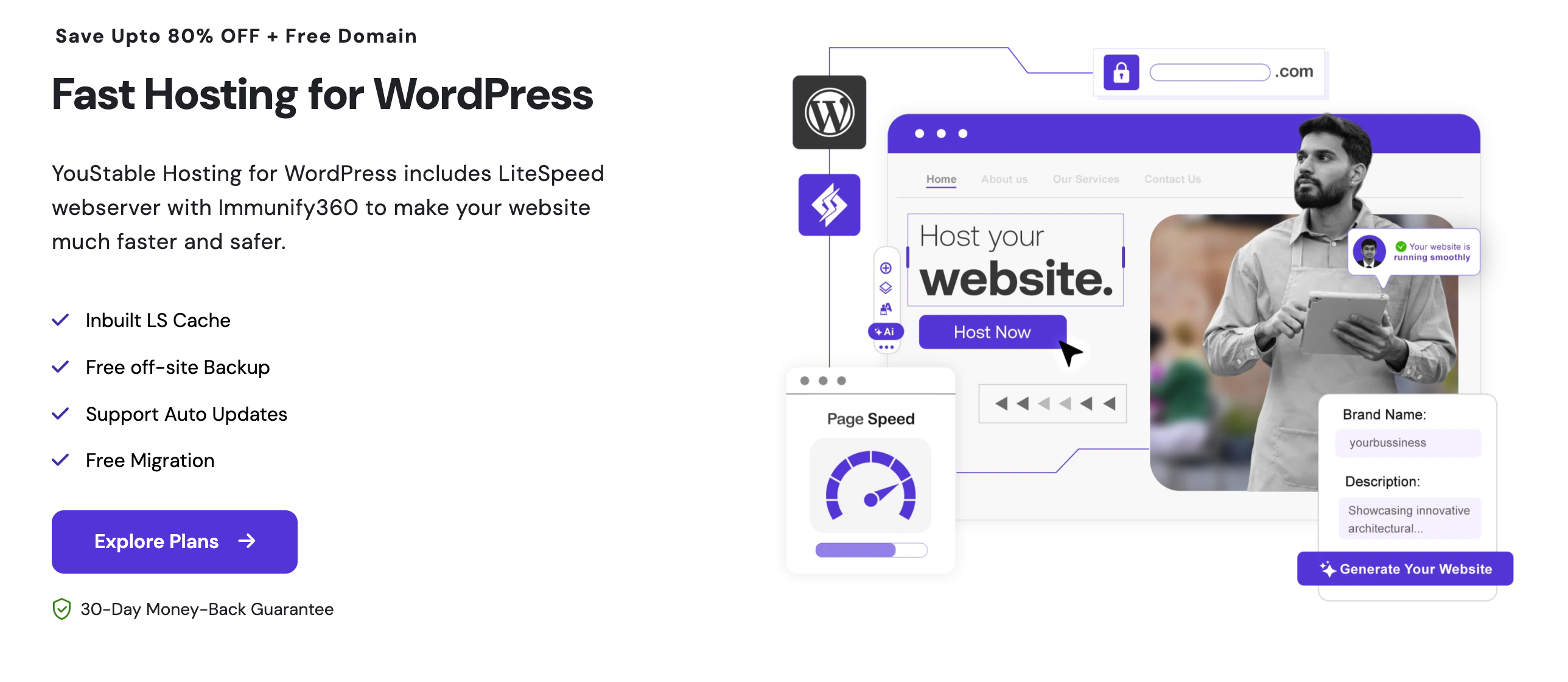 Powered by NVMe SSD storage and the LiteSpeed/LSCache stack, YouStable delivers blazing-fast page loads and consistently high uptime, making it a reliable web hosting choice for WordPress sites, eCommerce stores, and high-traffic applications. Our infrastructure is purpose-built for speed, security, and scale, ensuring your website performs at its peak, even during traffic spikes.