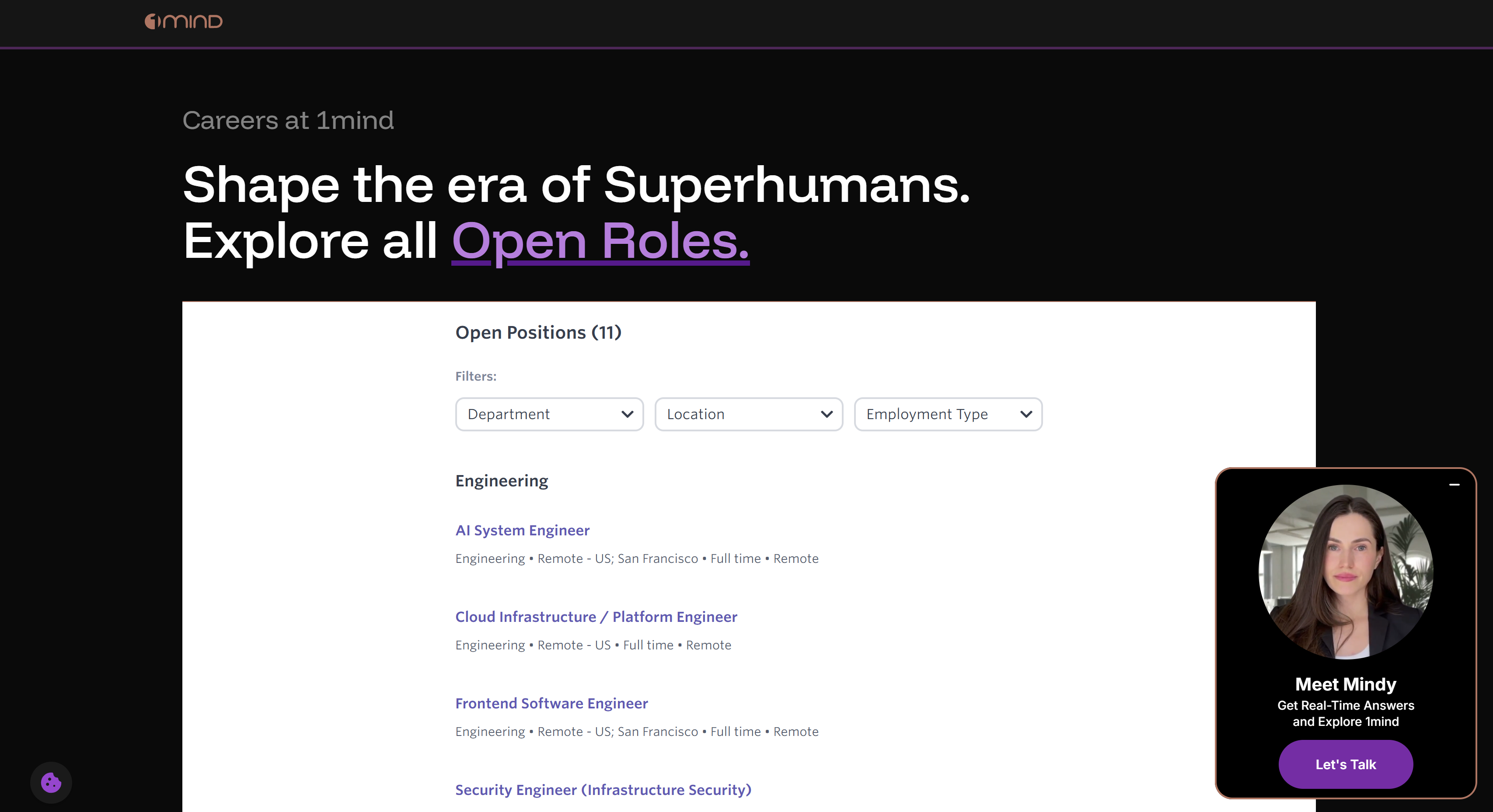 Partnering with 1mind has been an amazing experience. They are highly organized, fast-paced, and deeply committed to understanding and achieving our business goals. Their innovative AI-powered Superhuman, significantly boosted our inbound sales performance by engaging previously hard-to-reach, touchless buyers. Since launching the Superhuman, we’ve experienced remarkable customer engagement, driving a significant boost in growth in purchase rates. Truly a game-changer! Review collected by and hosted on G2.com.