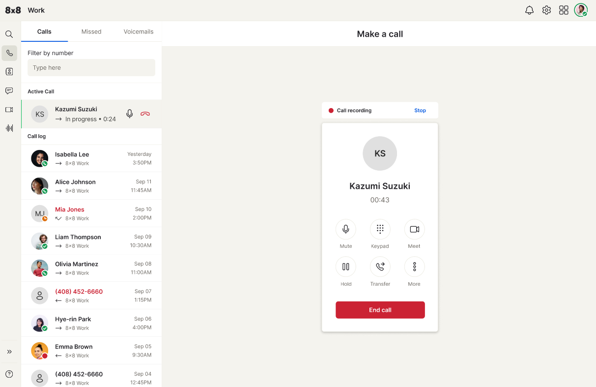 With over 300 patents and decades of cloud communications leadership, 8x8 helps businesses simplify IT, enhance employee experience, and accelerate customer engagement. 8x8 Work is the trusted choice for companies looking to modernize communications and prepare for what’s next.