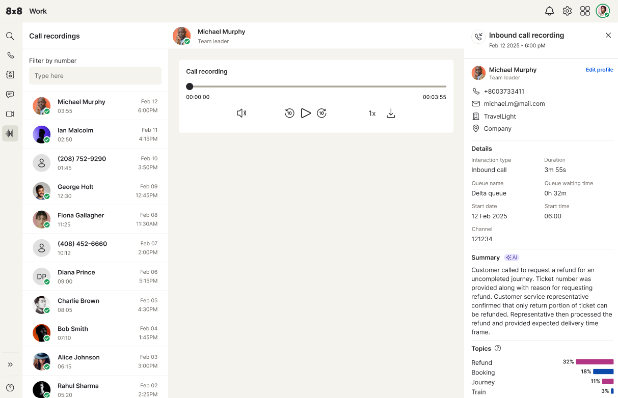 Scalable to Contact Center: Seamlessly expand to include 8x8’s contact center, CPaaS, and AI capabilities when you’re ready.
