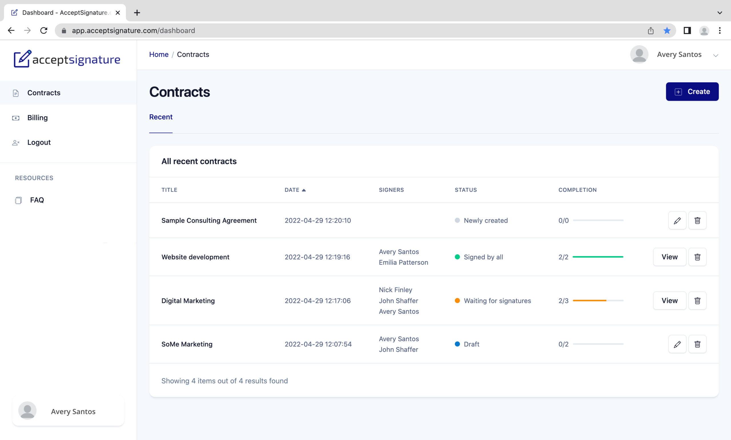 Legally-binding electronic signature service to prepare and gather important signed documents.