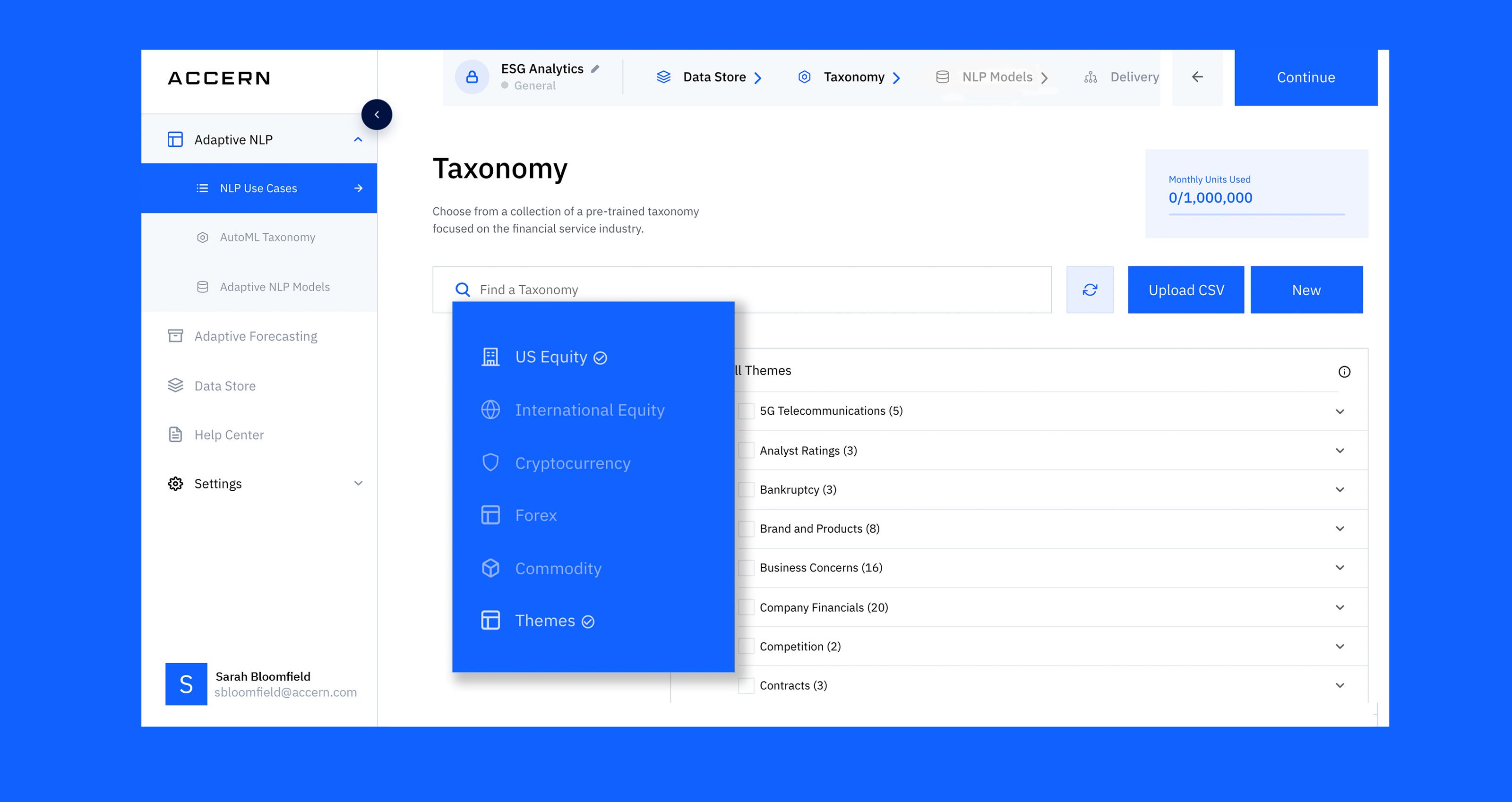 The Accern No-Code NLP Platform empowers domain experts and business analysts to extract the most accurate insights from massive streams of unstructured data–including news, social media, industry reports and internal documents—within minutes. Accern offers pre-built AI/ML/NLP solutions to minimize time to value and maximize ROI for equity research, credit risk, M&A activity, ESG performance, insurance claims, fraud prevention, sanctions monitoring and more.