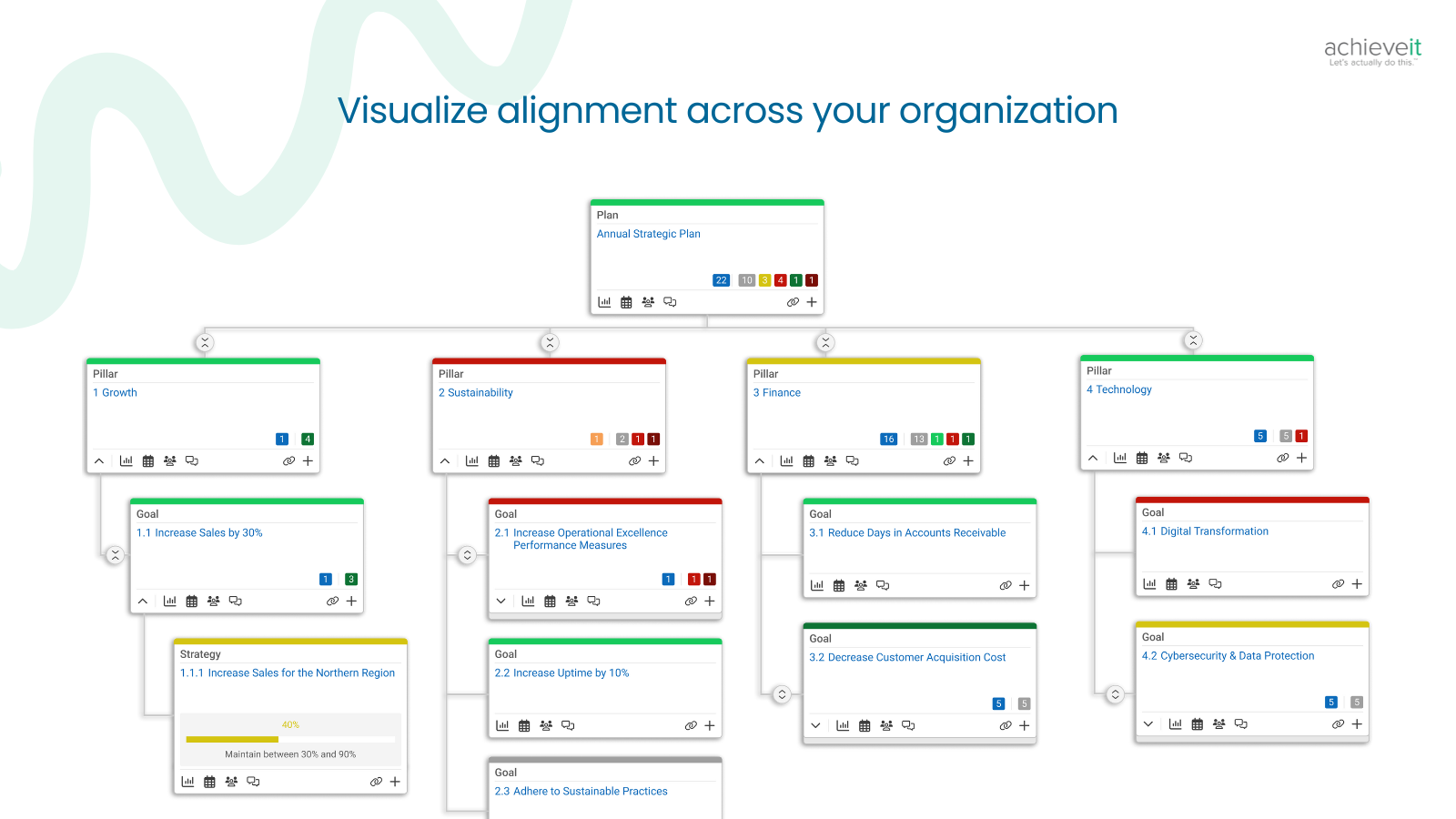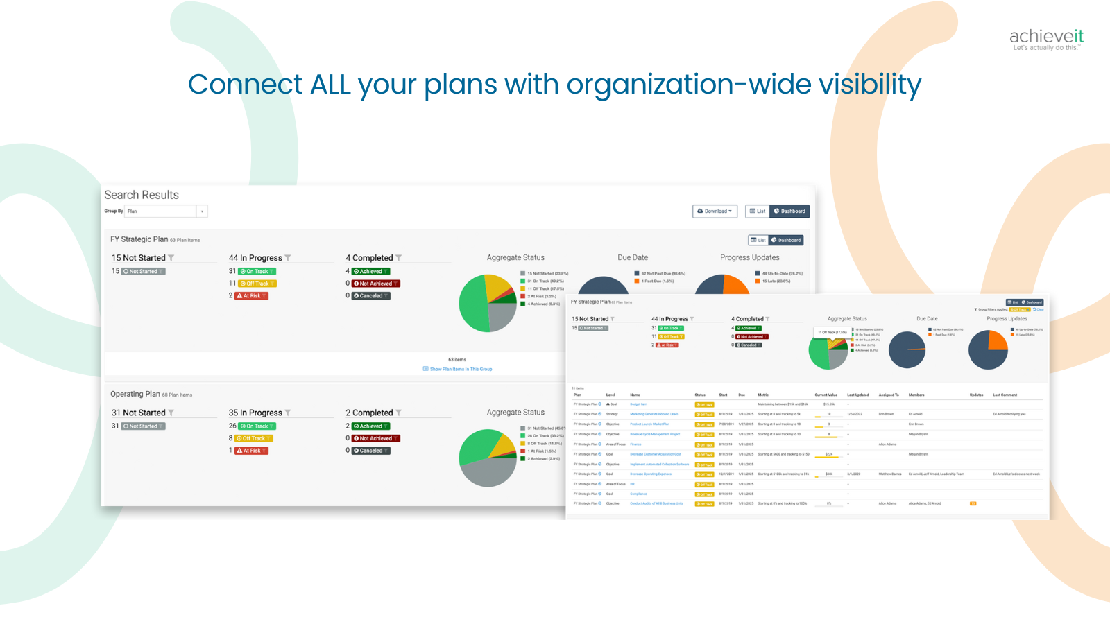 Instead of relying on separate systems and siloed updates, AchieveIt connects and aligns your teams to help the organization achieve its goals.