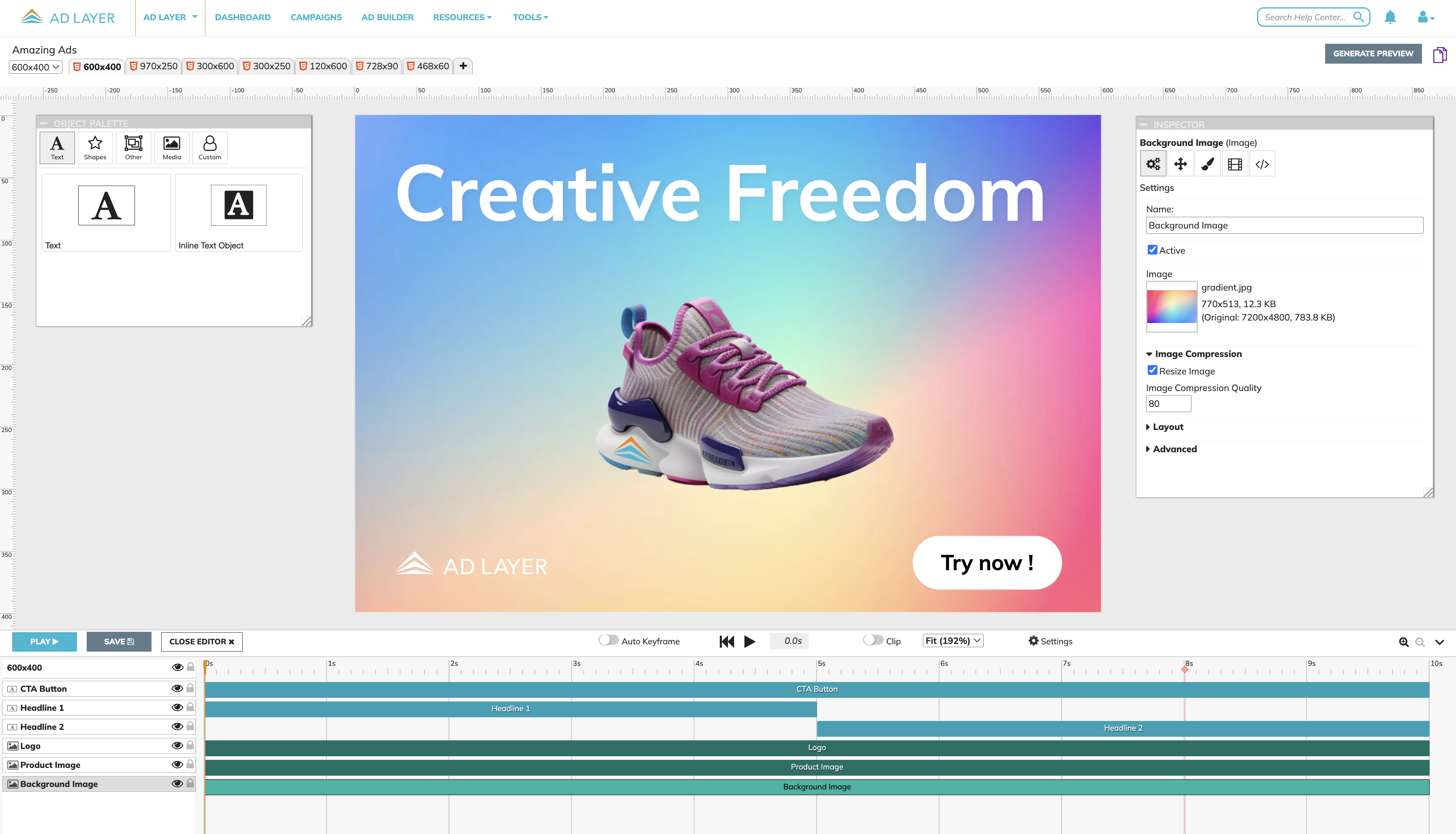 Creative Automation for Media is a product for publishers and platforms (such as ad networks and DSPs). It allows media owners and operators to create and activate premium and creative-first ad products.