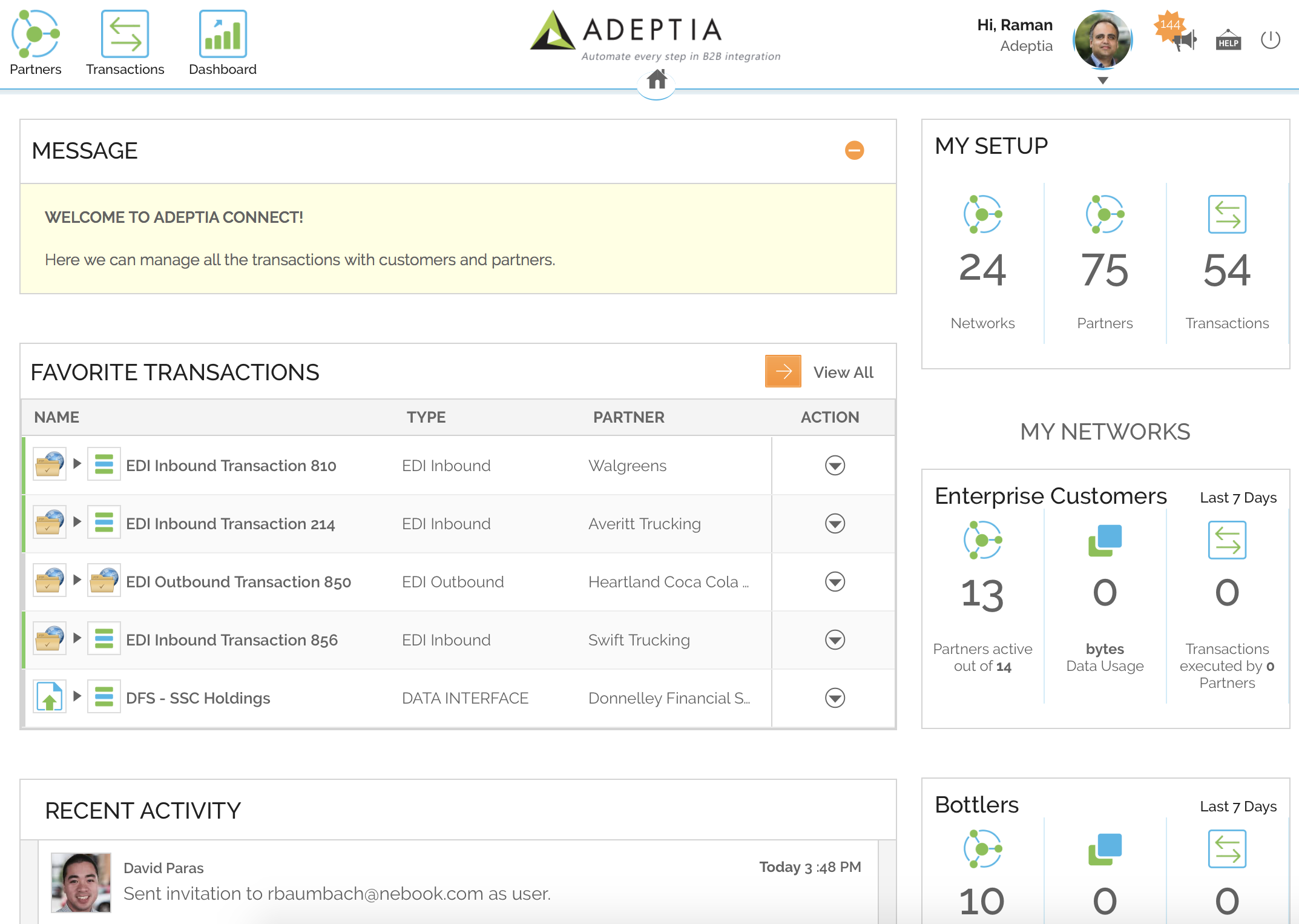 Our use of Adeptia allows us to very quickly code/integration to a number of different vendor formats. This allows Orion to set up a data flow between Orion and a vendor within weeks, instead of relying on our development pipeline, which would typically take many months. The GUI funcationality of all of the configurations allows us to bypass a developer's time and effort, and allows employees with less technical skills to take the place of developer effort. This makes Orion more efficient, and will save Orion costs in the long term.