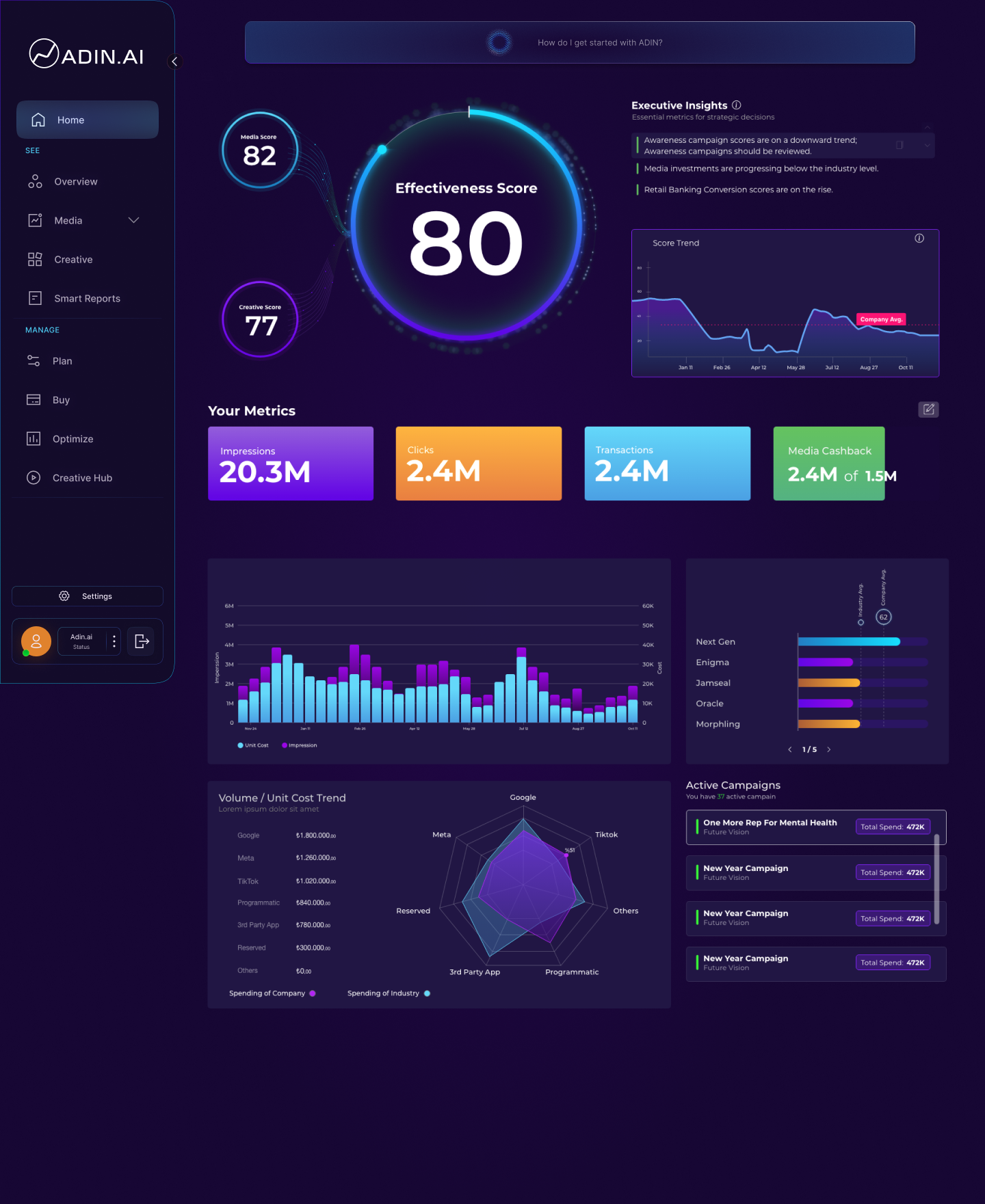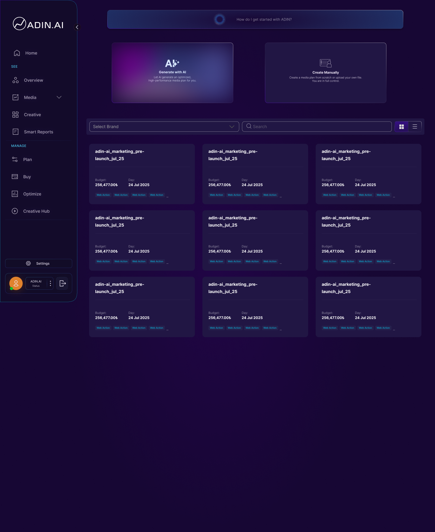 Maximize advertising return up to 5x and minimize time & cost up to 100x. ADIN.AI drives stronger digital marketing performance while simplifying the entire process of cross-channel media planning, optimization, and smart reporting using AI-Native technology.