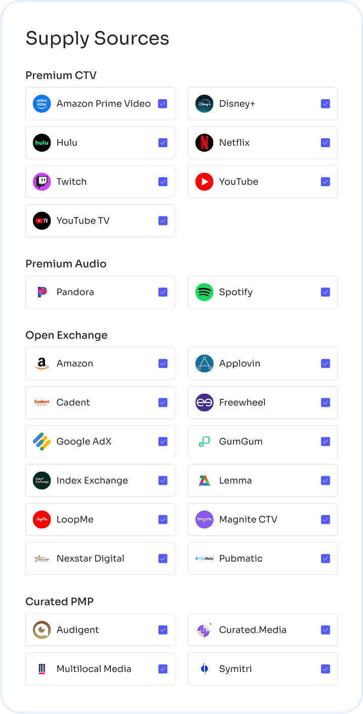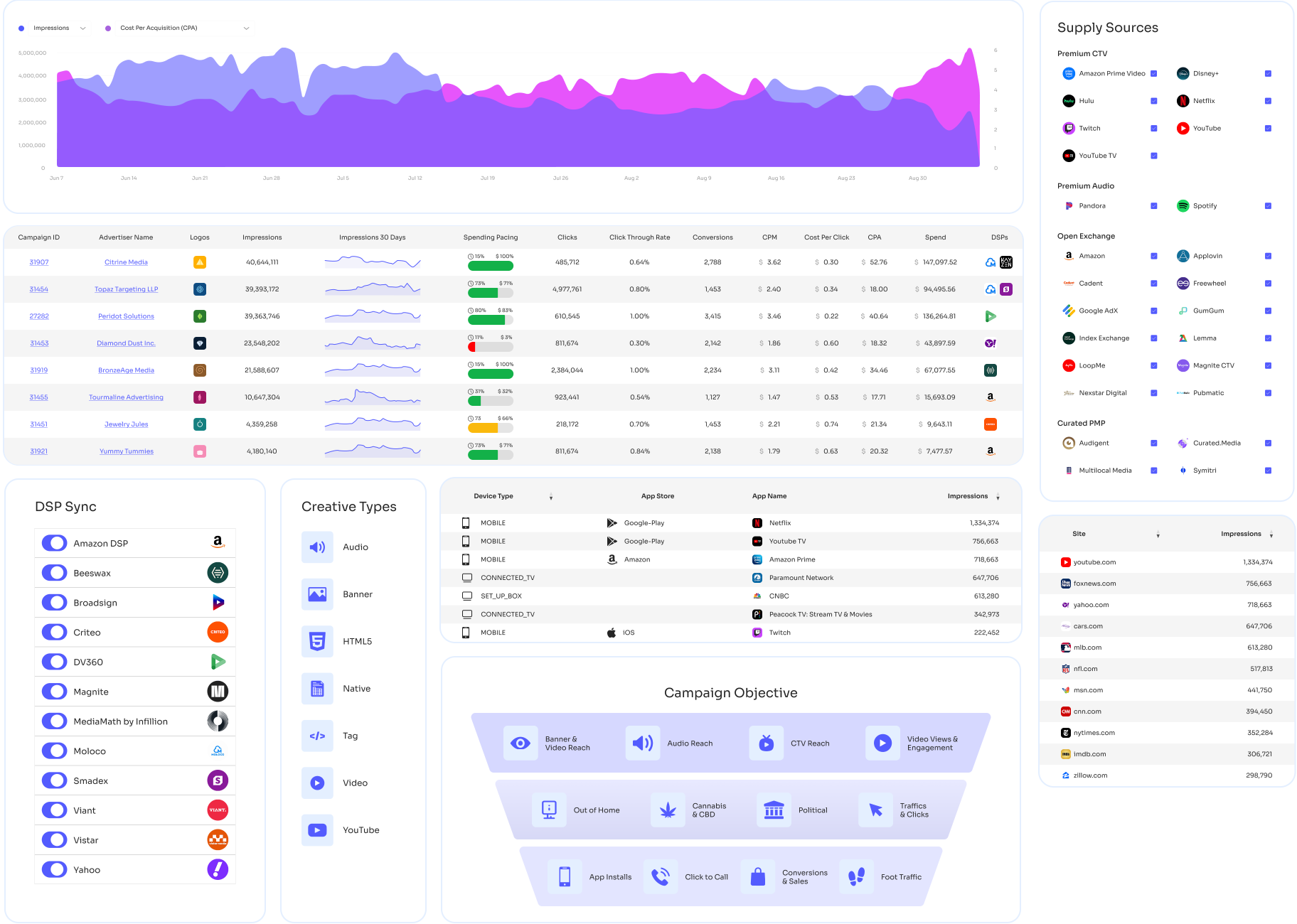 An easy to use DSP-agnostic platform where campaigns launch in minutes across every channel, screen stype, and stage of the funnel.