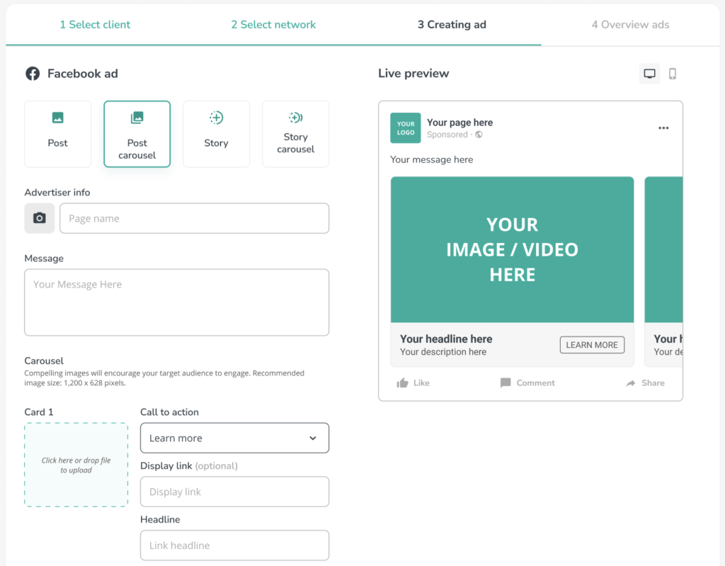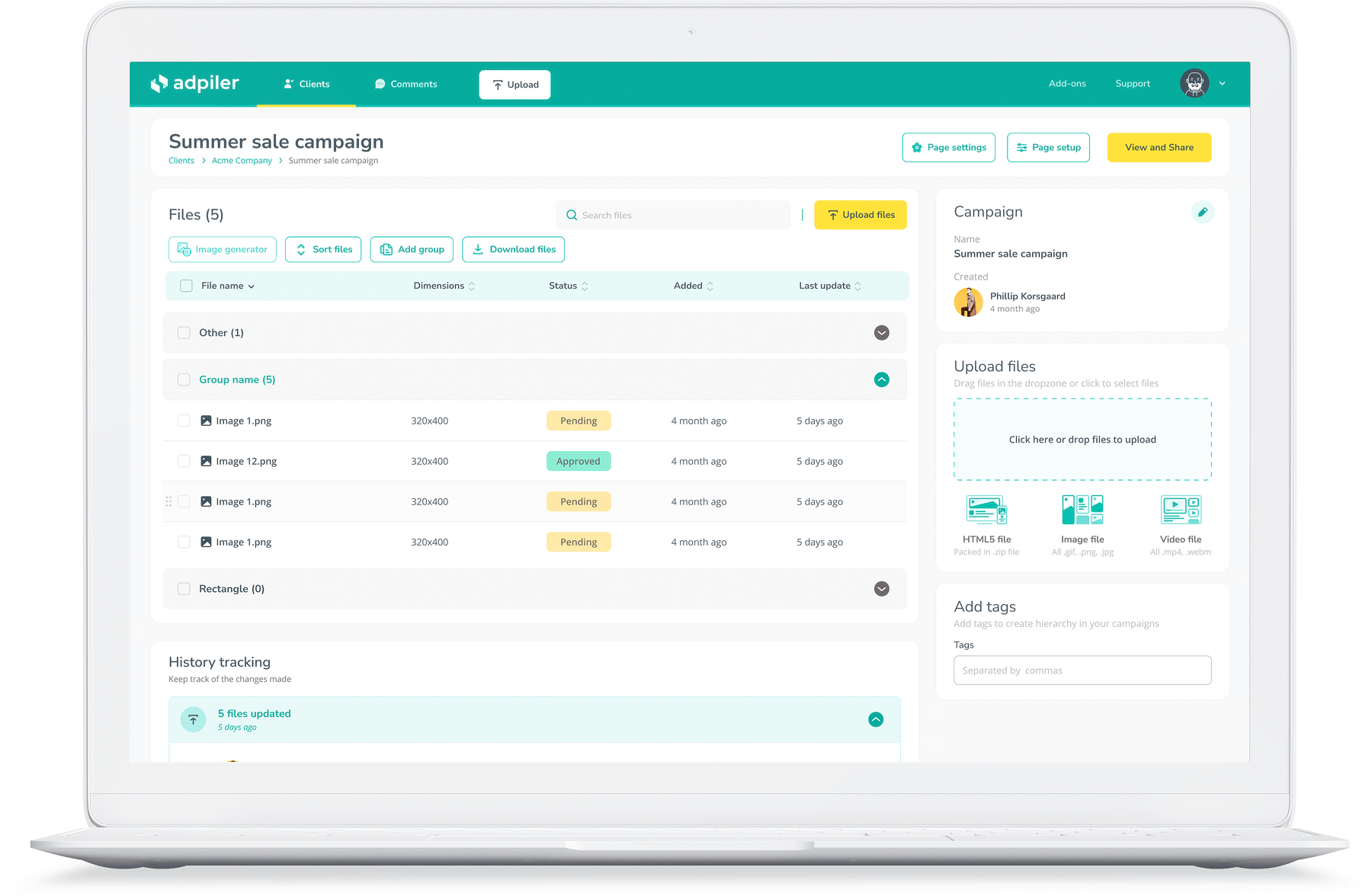 It's pretty easy and intuitive to use, and there are a lot of customizable options to help you get what you need. For instance, you can create groups to separate HTML5 files from JPG files. You can comment on ads when you need edits. You can even password protect a page. There's great flexibility there. Review collected by and hosted on G2.com.