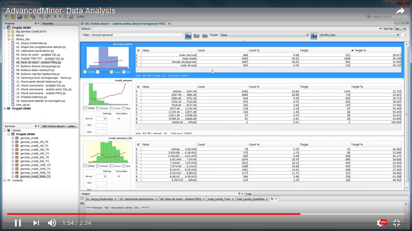 Complex analytical processes can be defined in a simple way using drag & drop technique. Advanced users can create their own scripts and new node types.
