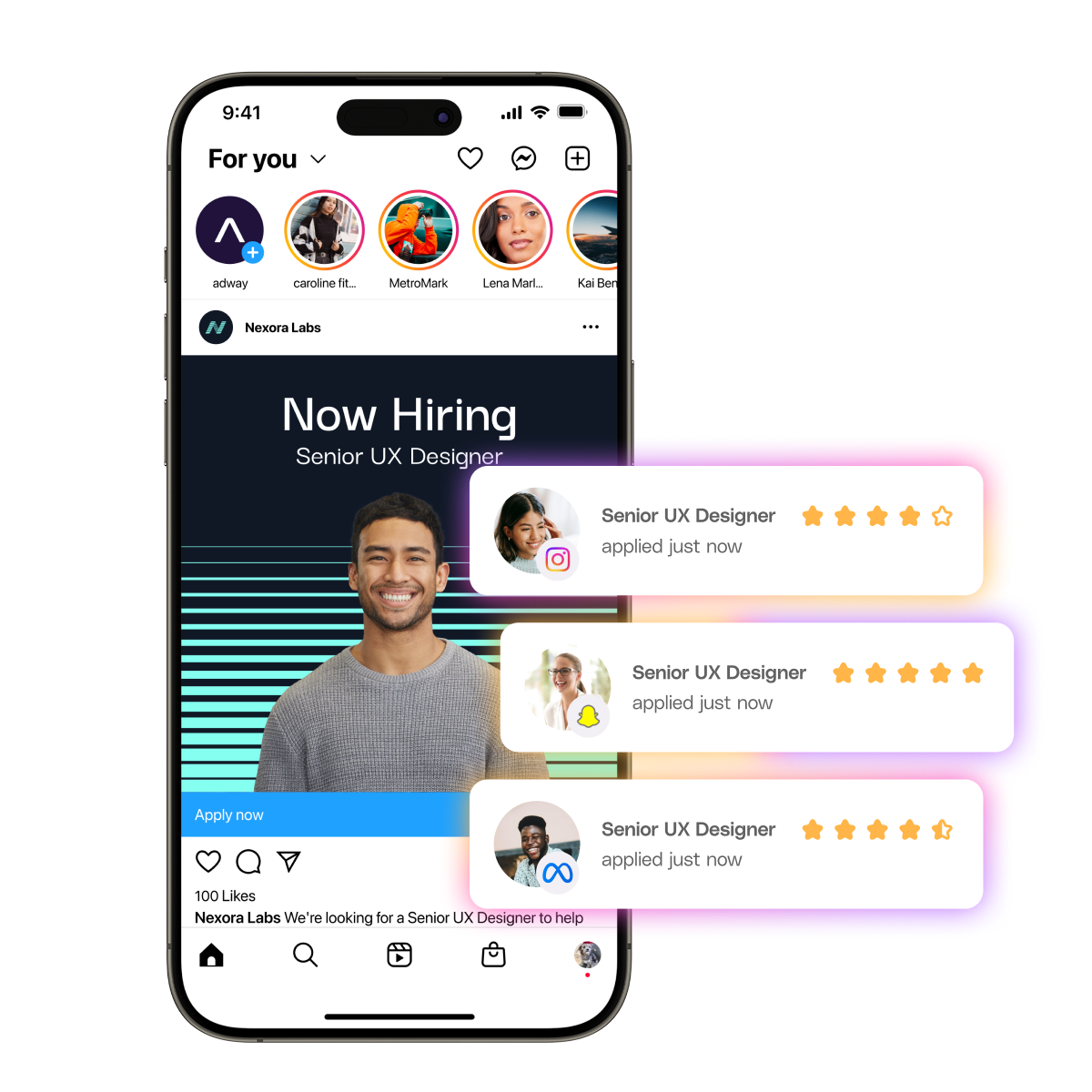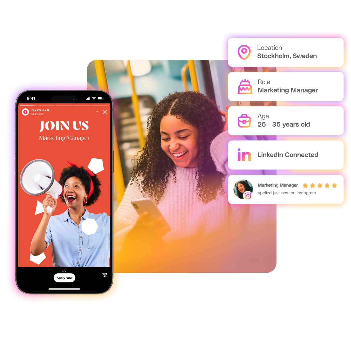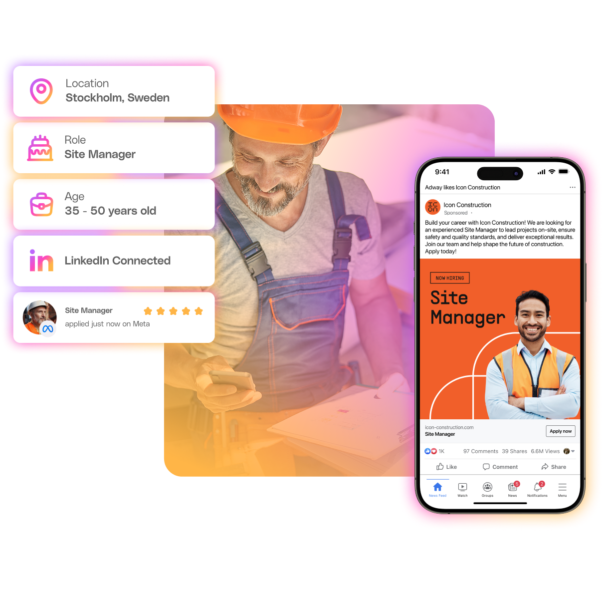- Social Apply: lets candidates apply directly from the ad in as little as 30 seconds – lowering cost-per-application by 54 %.
