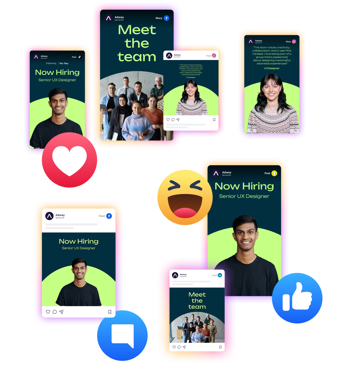 Adway uses AI-powered targeting, pre-engaged social talent pools and always-on employer-brand activation to reach high-quality candidates on the social platforms they use every day.