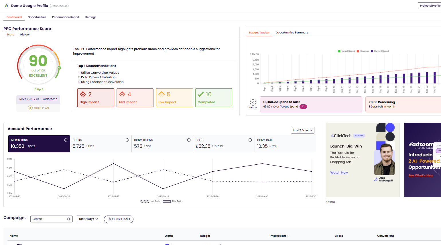 - Optimise & Improve: Apply performance fixes quickly, improve bidding strategies, and clean up campaign structure.