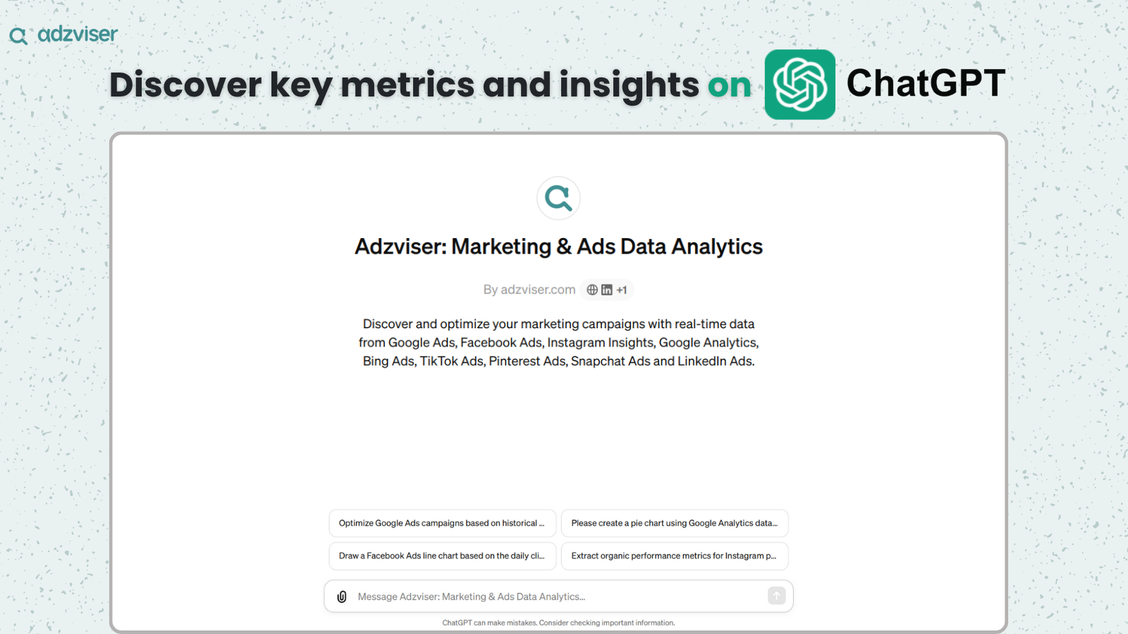 I appreciate Adzviser's per-client workspace setup, which simplifies organizing data sources compared to setting them up via channels. The Google Sheets interface is user-friendly and efficient, working straight out of the box, enhancing my workflow. I highly value the daily data refresh, which saves time and lets me focus on analyzing data for better client outcomes. The customer support is excellent and responsive, addressing my issues swiftly. The pricing is competitive and scales nicely with business growth, which is crucial for me. Review collected by and hosted on G2.com.