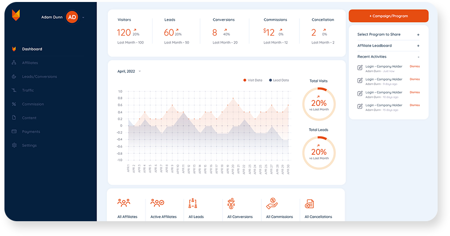 Tracknow is an affiliate software that allows you to connect your E-Commerce website or start your own affiliate marketing platform.