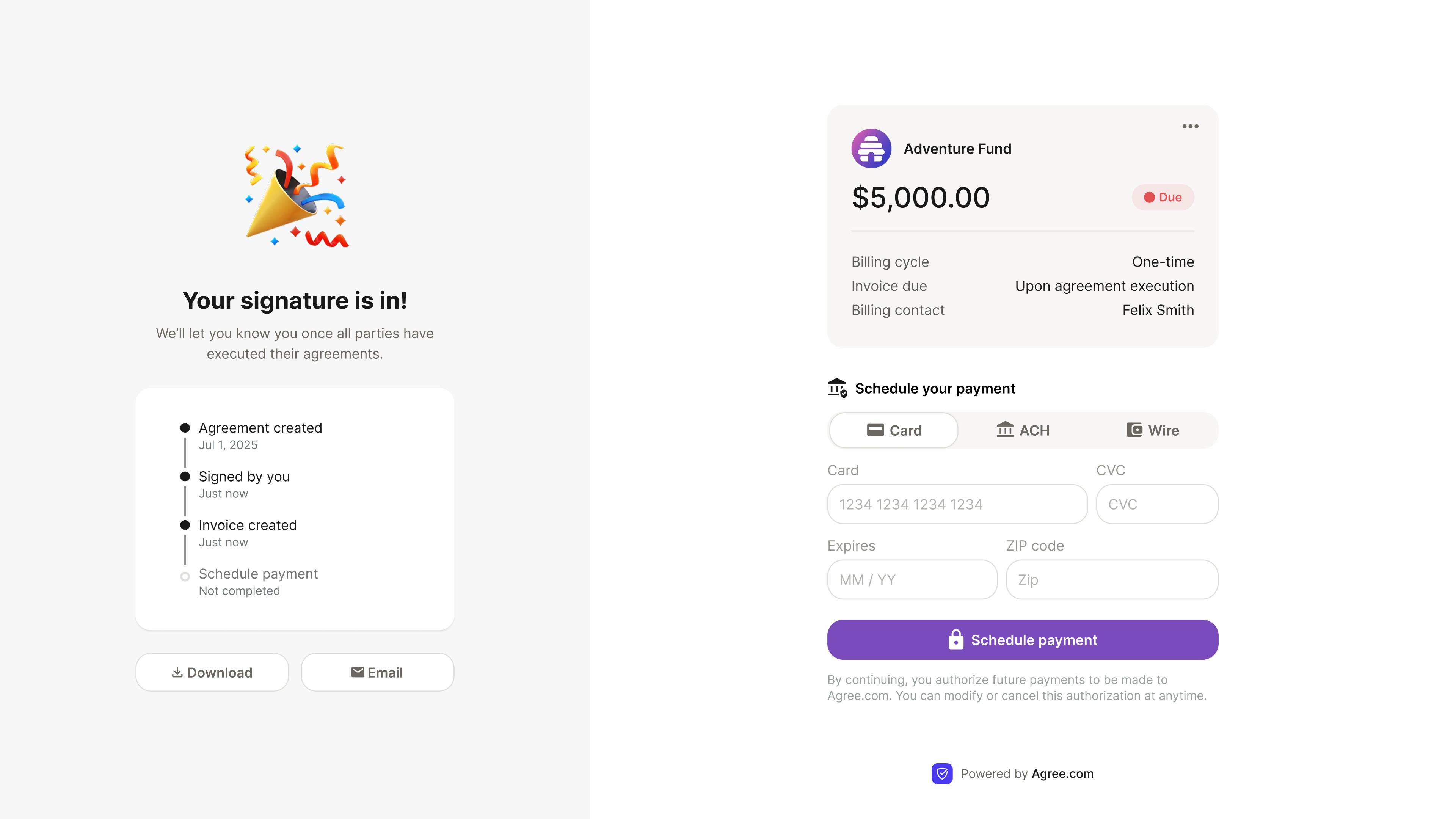 Once you have things set up, it is very efficient to send a contract to a client and for them to sign the contract. The online system is simplified to ensure that the essential contract pieces are incorporated into the custom contract. You select the additional elements and key in the information required and it is sent away to be signed. Once signed, both parties get a copy. The interface is modern and clean. Review collected by and hosted on G2.com.