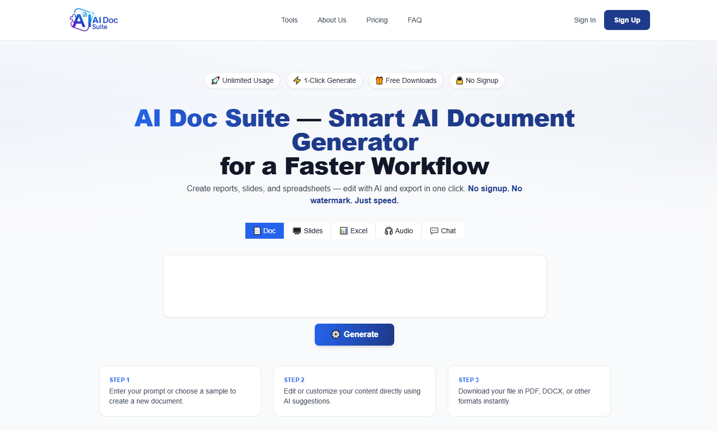 What stands out most is how easy it is to start using AI Document Suite without any setup. It’s fully browser-based, requires no installation or complex onboarding, and combines document creation, formatting, and conversion in one place. The interface is simple, and the tools save a lot of time when creating documents, summaries, and structured content. Review collected by and hosted on G2.com.