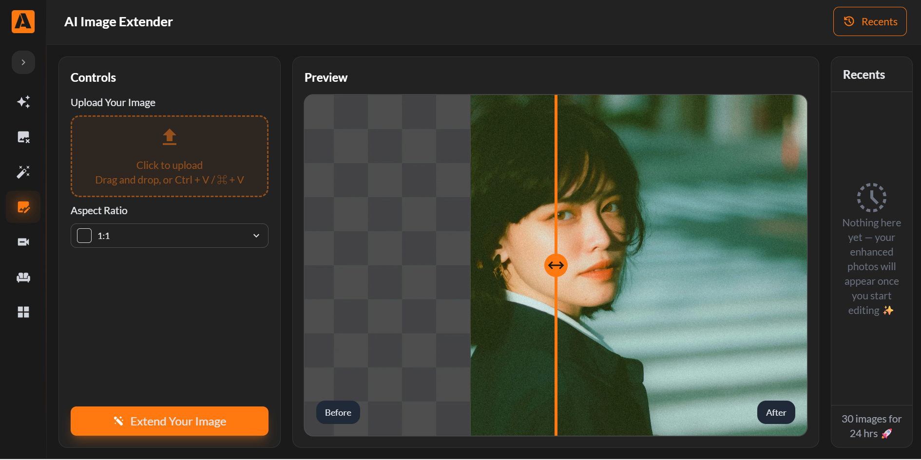 Example of an AI-based image extension used to expand image boundaries while maintaining visual consistency.