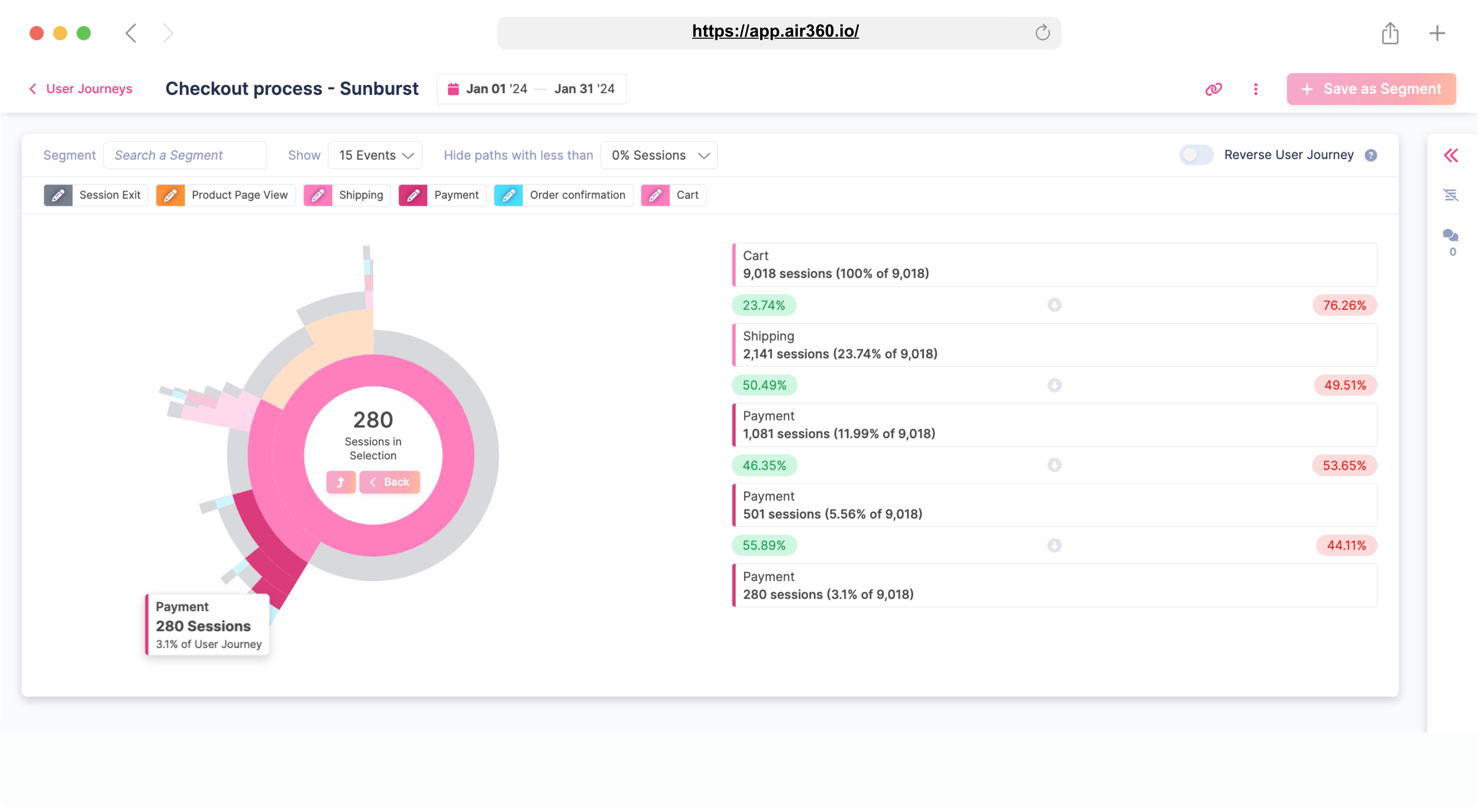 What I like best about Air360 is how it uncovers hidden user behaviors, making it easier to spot where users get stuck. It's great for quickly finding areas to improve and boosting conversions. Plus, the interface is user-friendly, so insights are easy to understand. It integrate with other tools.