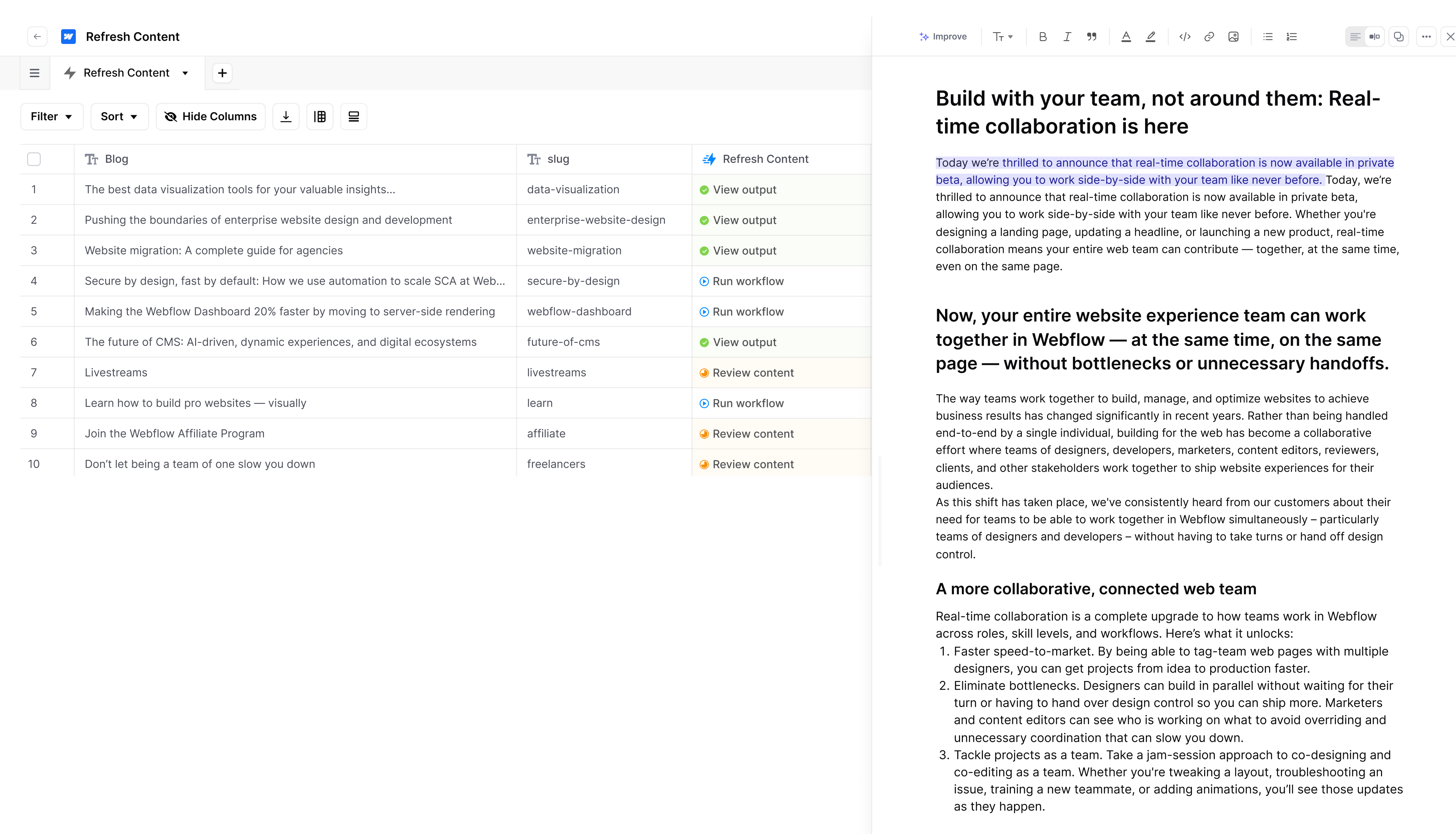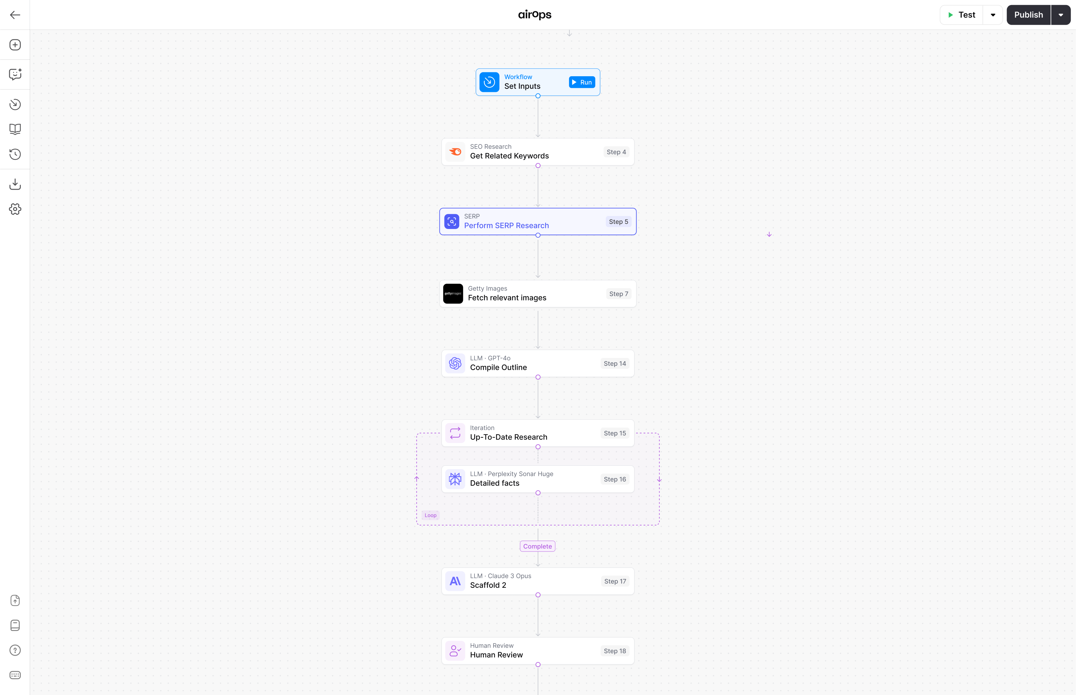 What I like best about AirOps is its ability to turn complex SEO and content workflows into a single, scalable system. The iterator-based workflows make it easy to scrape data, analyse SERPs, extract insights, and generate high-quality content automatically. Everything runs end-to-end in minutes, not hours, while still allowing granular control through logic and conditions. It replaces multiple tools with one flexible platform and delivers faster execution, better consistency, and measurable impact on search performance and LLM visibility. Review collected by and hosted on G2.com.