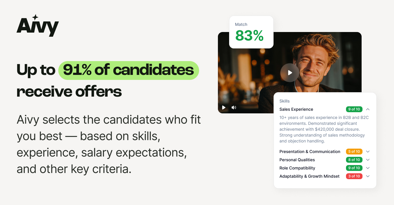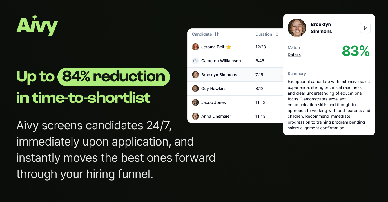 Such a cool instrument to work with! We're working with a lot of mass roles in our company and we found this AI bot very useful and user-friendly. The possibility to create an individual avatar for a virtual recruiter and put on our own branding is great. The team is amazing, they response to all our queries, explain all the ways how the bot works, ready to experiment with different ideas.