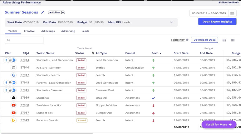 Tracking specific paid media activity directly to enrolled students.