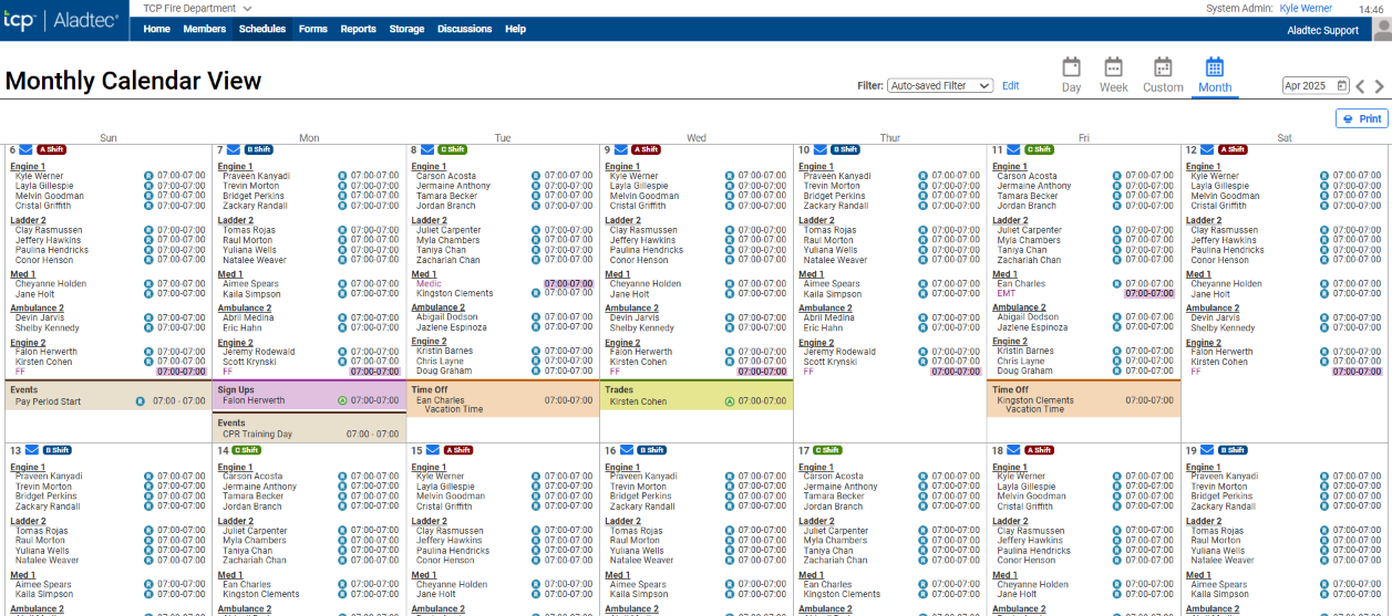 Aladtec has been a major improvement over our former scheduling software, which was actually just a printed calendar using a Microsoft Word document. Each time we made a change, we printed off another set of pages, which obviously created multiple versions of the schedule floating around, and led to people not always knowing when to work. One of my favorite features is the automated process for creating the next month's schedule. The program allows the user to create shift rotations, and once entered (which does take some manual entry time) it knows exactly how to fill the schedule for the next months and even years. That has been the biggest time-saver for me, as I would have to manually enter each person's name onto a new month's page, so basically starting over each time. Aladtec eliminated all of that. The program let's the admin enter benefit time calculations, so things like vacation time, comp time and sick time are all tracked and accounted for. It also keeps track of the hours that are accumulated over time, and what is available for each employee to use. That is another huge time saver, and eliminated trying to track those hours manually. Best of all, in my opinion, is that the employee is required to "sign-off" on their submitted time card, and they stipulate that what they have entered and read is factual and accurate. No more arguing about exactly how many vacation hours or sick time someone used; they just acknowledged it was correct as presented. There are many more time saving features, but those are my main winners. It is overall convenient, easy to use (once mastered) and the customer support has been very responsive to my requests for clarification of a feature or a process. Review collected by and hosted on G2.com.