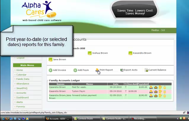REPORTS: Detailed reports for everything you do is available from the website for student attendance, staff timecard, billing - payments/invoices and entire roster.
