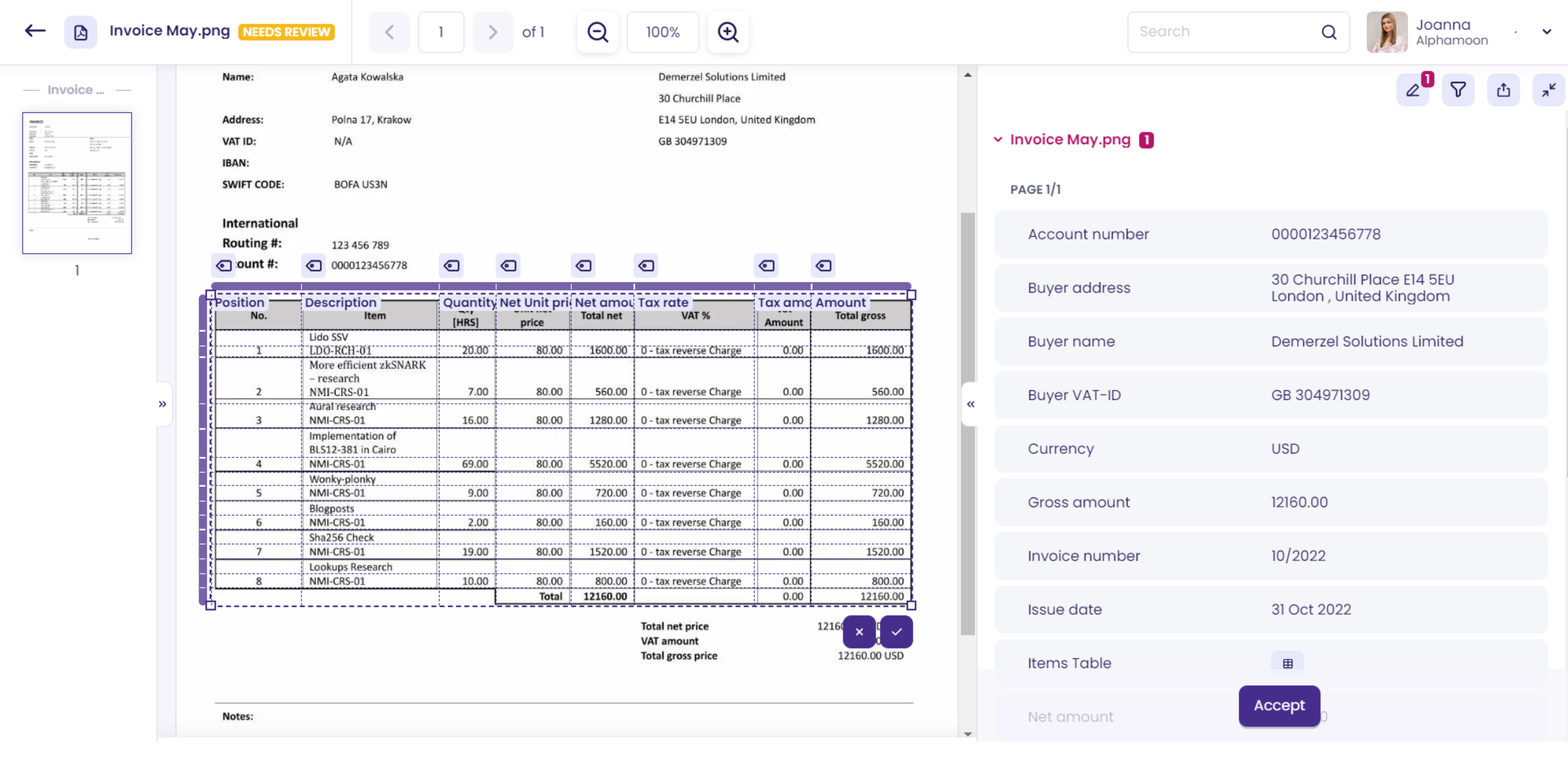 Rossum's artificial intelligence understands complex structured documents, enabling companies to capture data from financial documents efficiently and with human-level accuracy.