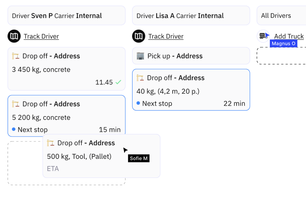 Every delivery is unique with a stop having a servicing time slot, ASAP delivery or special needs, the software caters to all of this via time windows an comments.