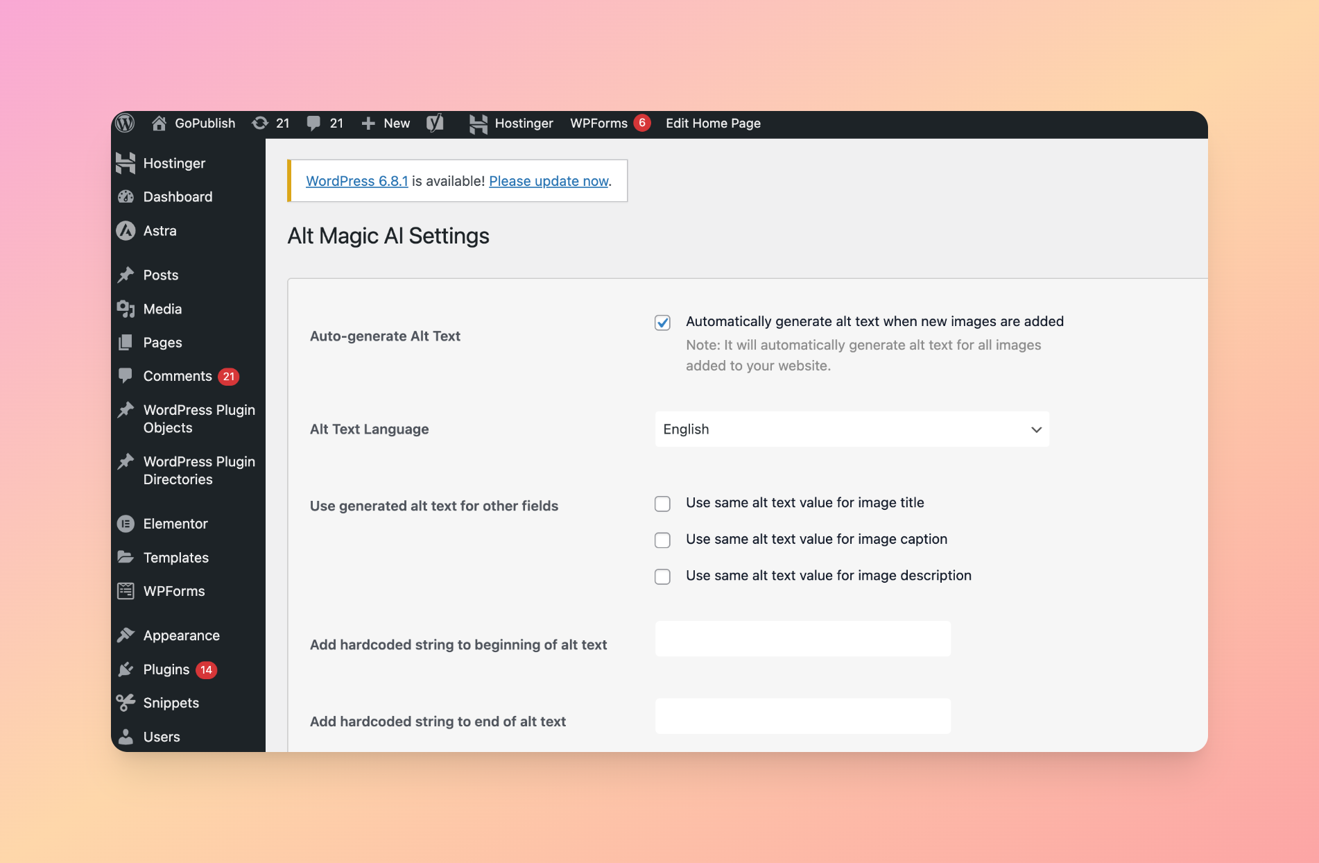 What I like most is that Alt Magic generates high-quality alt descriptions in Hungarian extremely well and very quickly. The bulk processing feature works flawlessly, allowing me to create accurate alt text for large batches of images without any issues. It saves a huge amount of time and delivers consistent, professional results. Review collected by and hosted on G2.com.