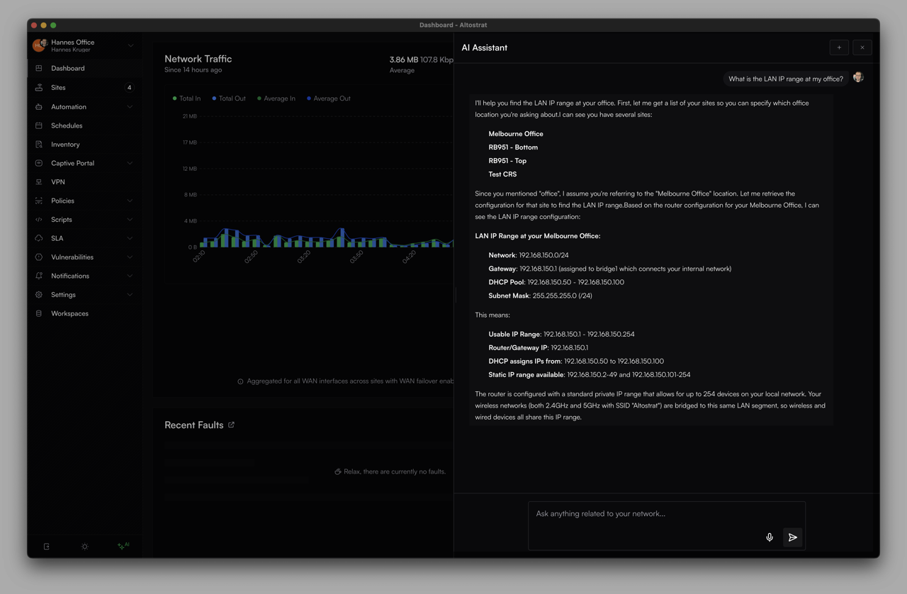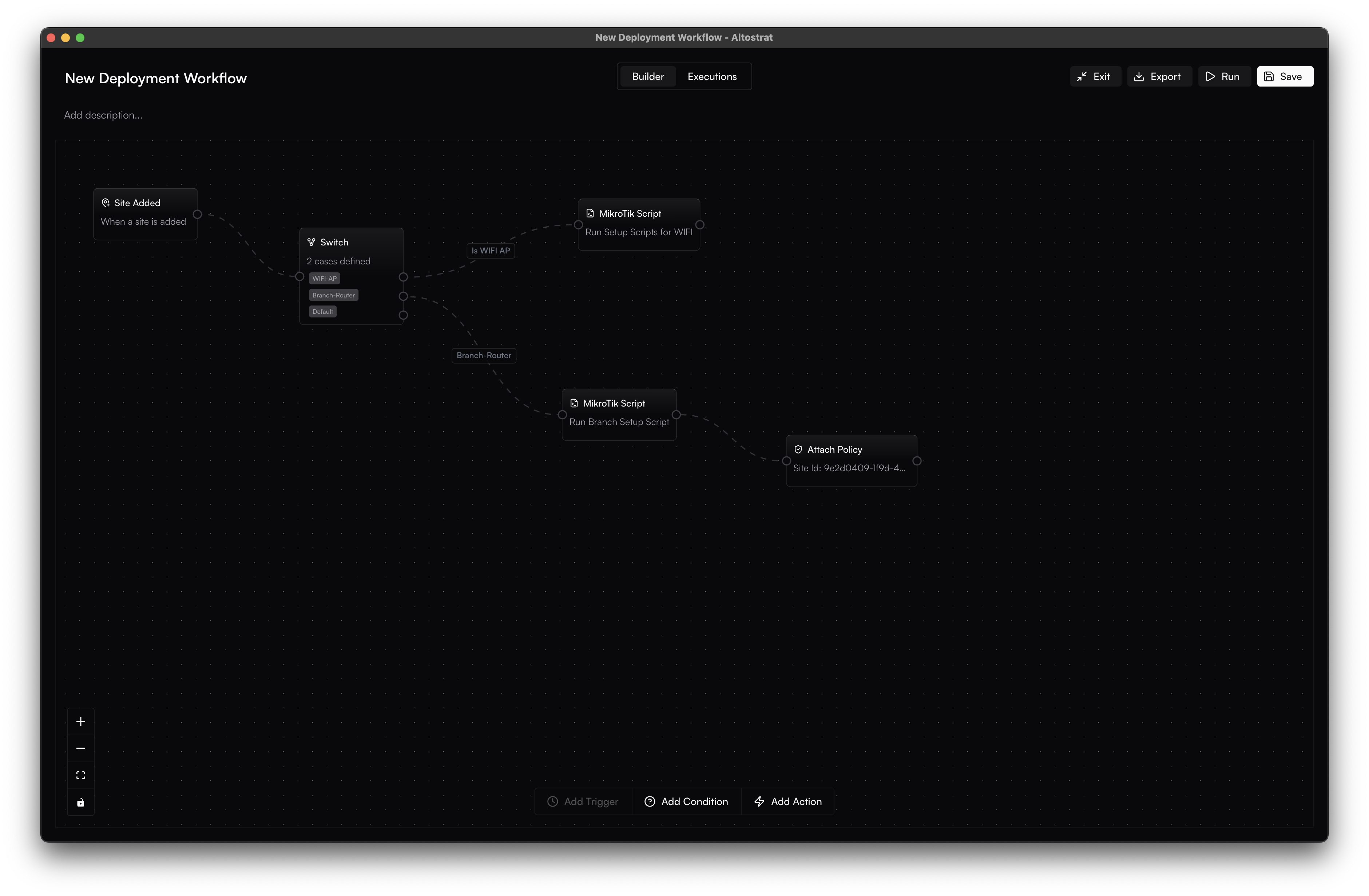I really appreciate the seamless remote access to all onsite Mikrotiks, along with the ability to reach any connected equipment—whether it's an ISP router, PBX, or access points. This level of accessibility makes management incredibly convenient. Their support team is exceptional and always quick to respond. Deployment is straightforward too; it's as simple as running a script on the onsite Mikrotik to onboard to Altostrart. We currently use it across more than 500 Mikrotik devices. Review collected by and hosted on G2.com.