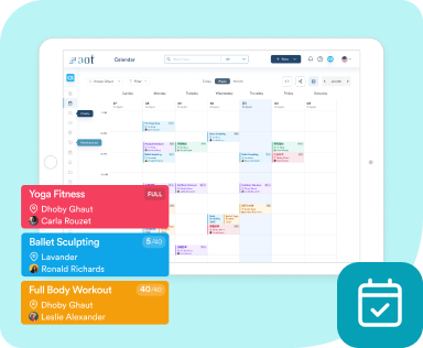 Say goodbye to messy bookings and manual membership tracking. With AOT, you’ll get intuitive, easy to use customizable appointment scheduling software that saves you time and money.