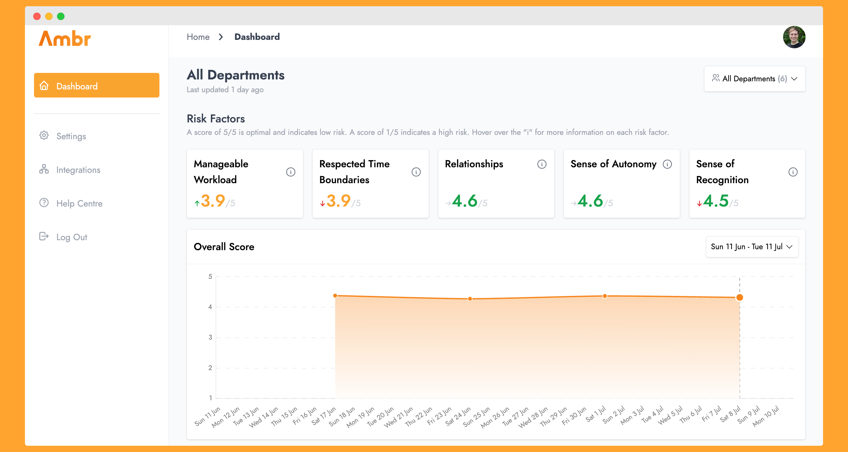 Ambr provides a summary of the main stress and burnout risk factors in your organization.