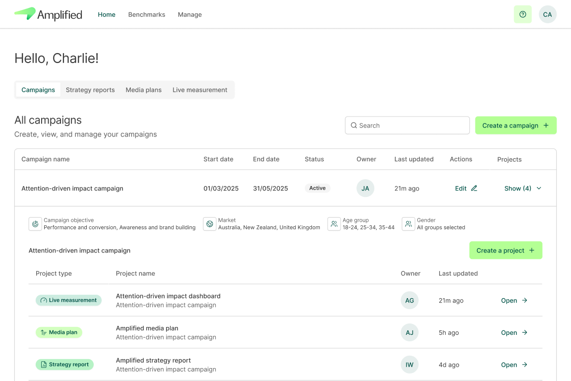 Amplified Attention Measurement Platform