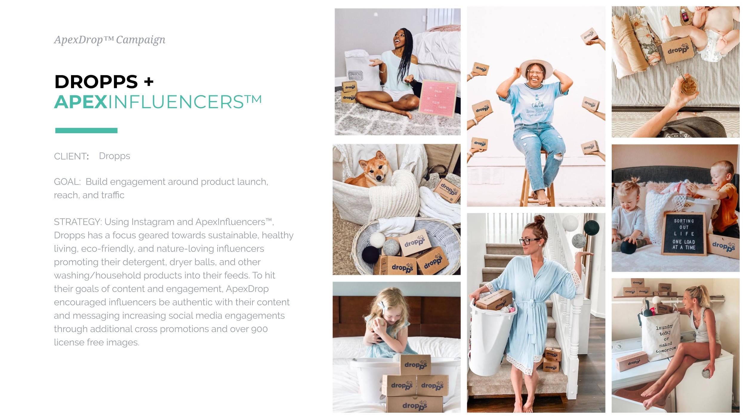 ApexDrop Influence Marketing Agency is a full-service provider of both micro-influencer marketing services and lifestyle photography services.