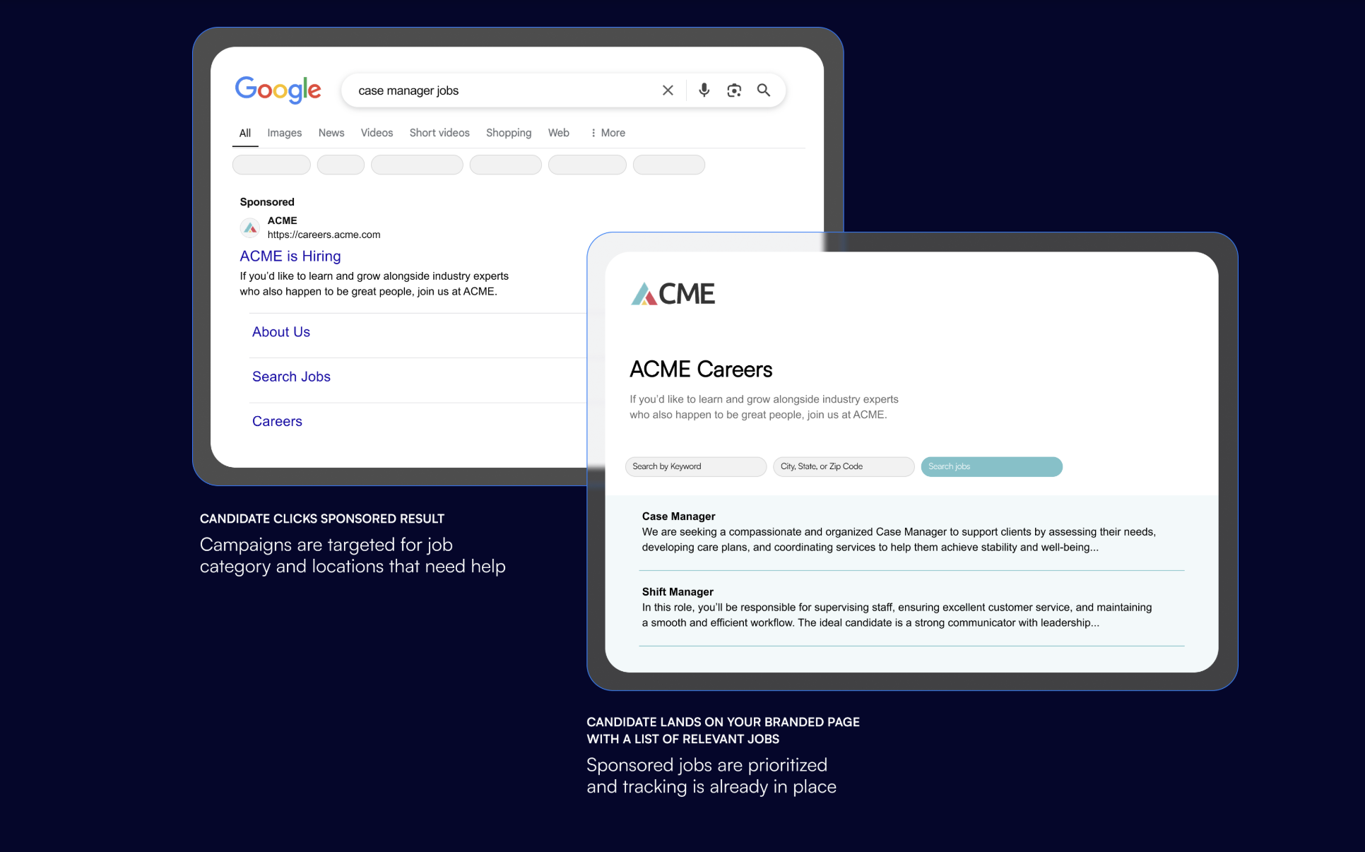 Appcast Search Ads helps you reach high-intent job seekers for your hard-to-fill roles through the industry’s first programmatic search solution.