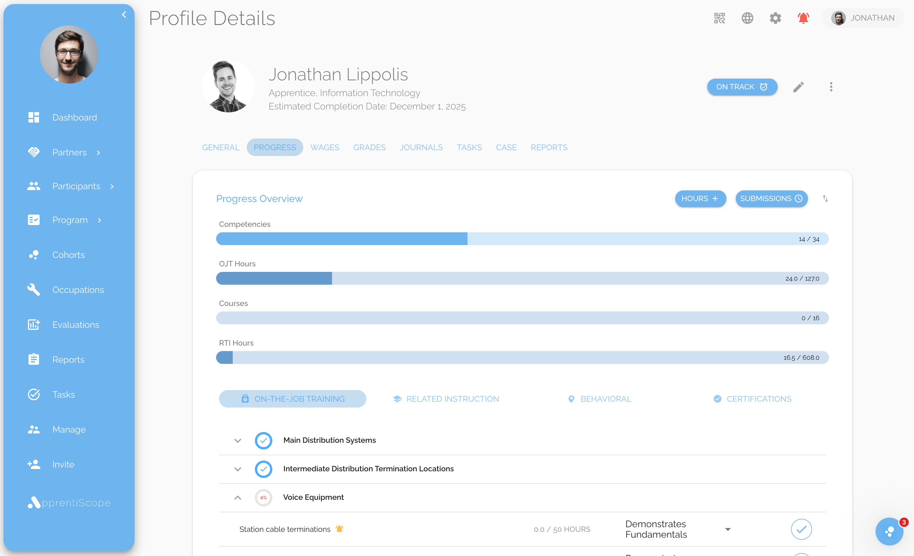 With ApprentiScope, program managers can easily track On-the-Job Training (OJT) hours and Related Technical Instruction (RTI), automate progress reporting, and stay fully compliant with U.S. Department of Labor (USDOL) regulations. The system streamlines every step of apprenticeship program management, from enrollment to completion, ensuring accuracy, efficiency, and peace of mind.