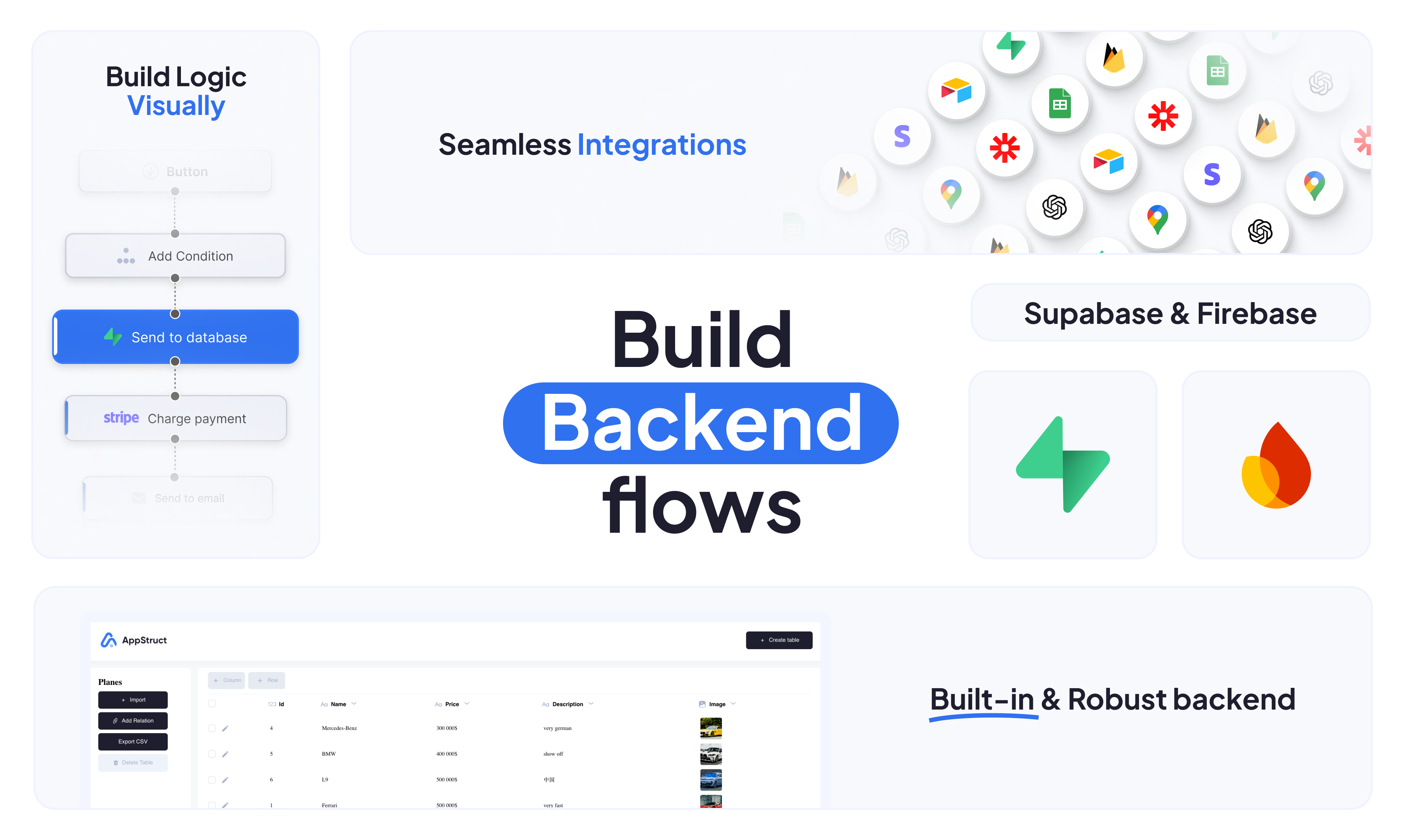 🗄️ Built-In & External Backends – Use our database or plug in Firebase/Supabase.
