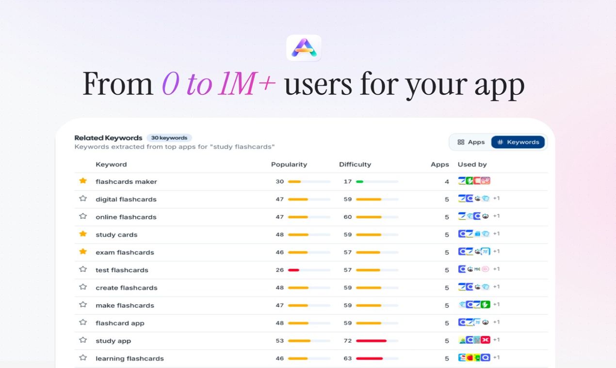 App Store Optimization (ASO) is one of the key factors for your app marketing success. They make it their mission to provide app developers from around the world an advantage in their app marketing efforts. You can build your app from just an idea, but to speed up your marketing progress at scale, you need help. The first step is to optimize your app's keyword rankings. That's where our Keyword Tracker comes into play.
