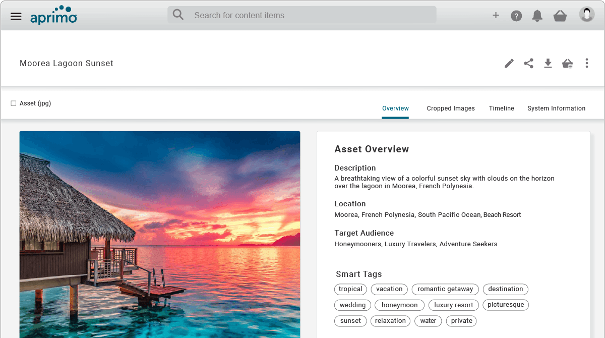 Aprimo is a provider of digital asset management and content operations solutions designed to streamline the entire content lifecycle for enterprises. By centralizing digital assets, automating workflows, and integrating advanced AI capabilities, Aprimo empowers organizations to efficiently create, manage, and distribute content across various channels, ensuring brand consistency and compliance.