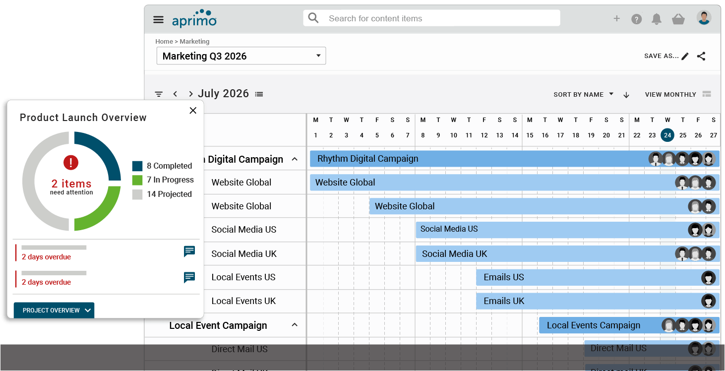 With rising content demands and increasing complexity, Aprimo helps enterprises eliminate content chaos by centralizing assets, automating workflows, and leveraging AI-powered metadata tagging and analytics. Our composable, API-first platform seamlessly integrates with marketing ecosystems, empowering teams to scale content operations efficiently while maintaining brand integrity and regulatory compliance.