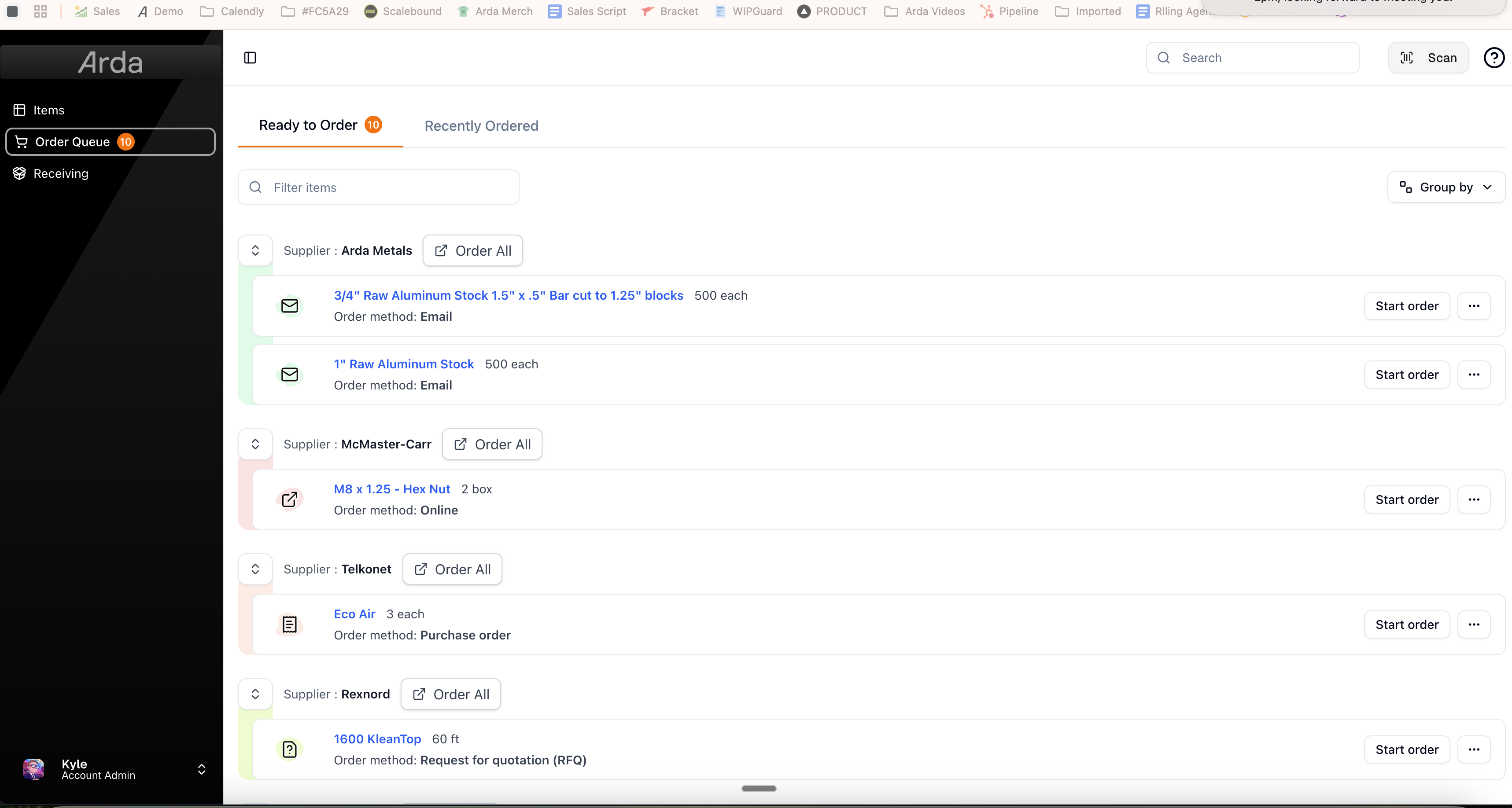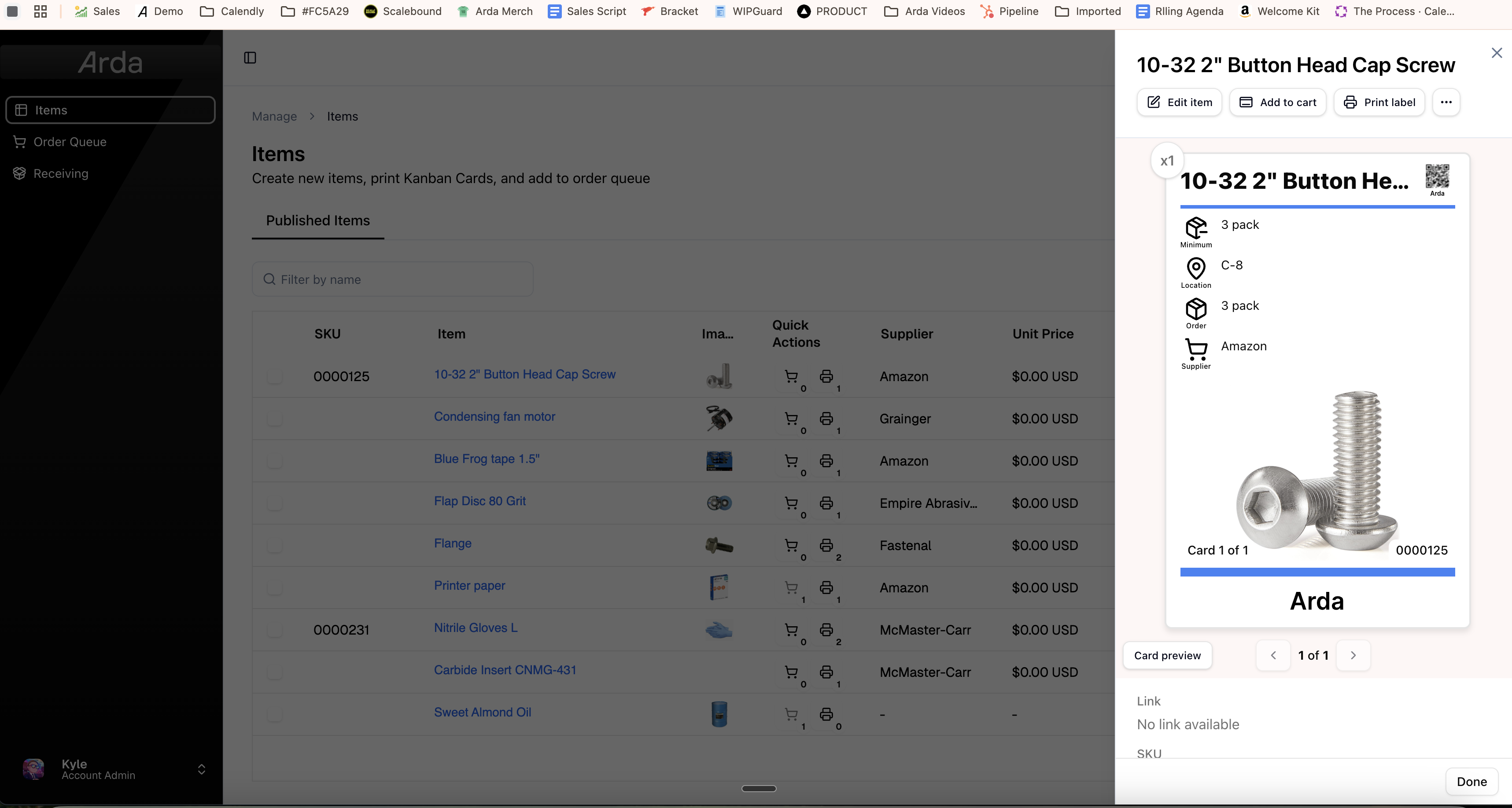 Arda is a very easy way to get going with improving your processes and inventory. You can start incrementally and over time add more. It doesn't create any big workflow changes. I just pull some items from the shelf, realize I'm low, scan the card with my phone, and then later on can order everything I need. The barrier to get started is nonexistent. Review collected by and hosted on G2.com.