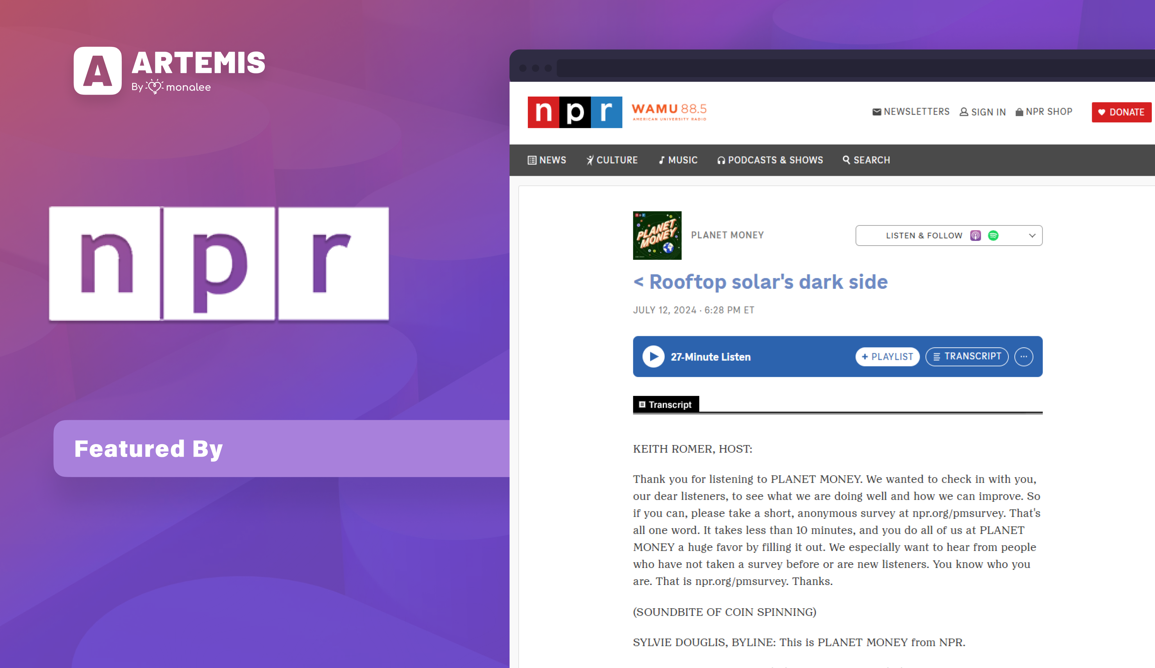 Artemis has been amazing these last 6 months. Review collected by and hosted on G2.com.