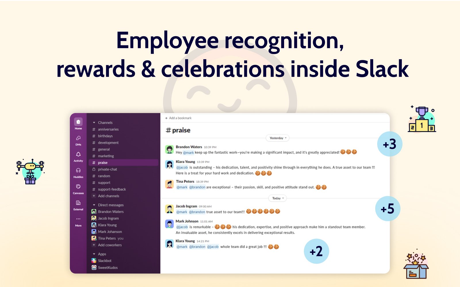 Sweet Kudos is one of those apps that helps your team members to sprinkle kindness and recognition throughout their day