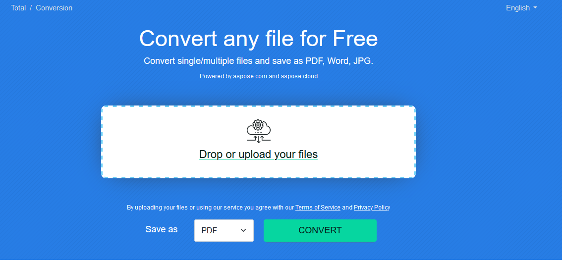 Aspose.Total Conversion is a free online document converter that completely supports conversion to/from many common documents formats, such as word processing, spreadsheet, presentation, CAD drawings, images and other popular file formats. It has included support for converting a single as well as multiple files to other supported file formats such as DOC, DOCX, DOTX, EMF, EPUB, GIF, JPEG, JPG, HTML, MHTML, OBJ, ODP, ODS, ODT, OTP TIFF, TXT, XLS, XLSB, XLSM, XLSX, XLT, XLTX, XML, XPS, PCL, PDF, PLY, PNG, POT, POTM, POTX, PPS, PPSM, PPSX, PPT, PPTM, PPTX, PS, PSD, RTF and many more. The app is very stable and efficiently works on all major platforms including Windows, Mac, Android and iOS. For a smooth conversion you need to upload your documents and select the output format and press the convert button. Once the conversion process is completed you can instantly download the converted document as well as view it or share it with others.