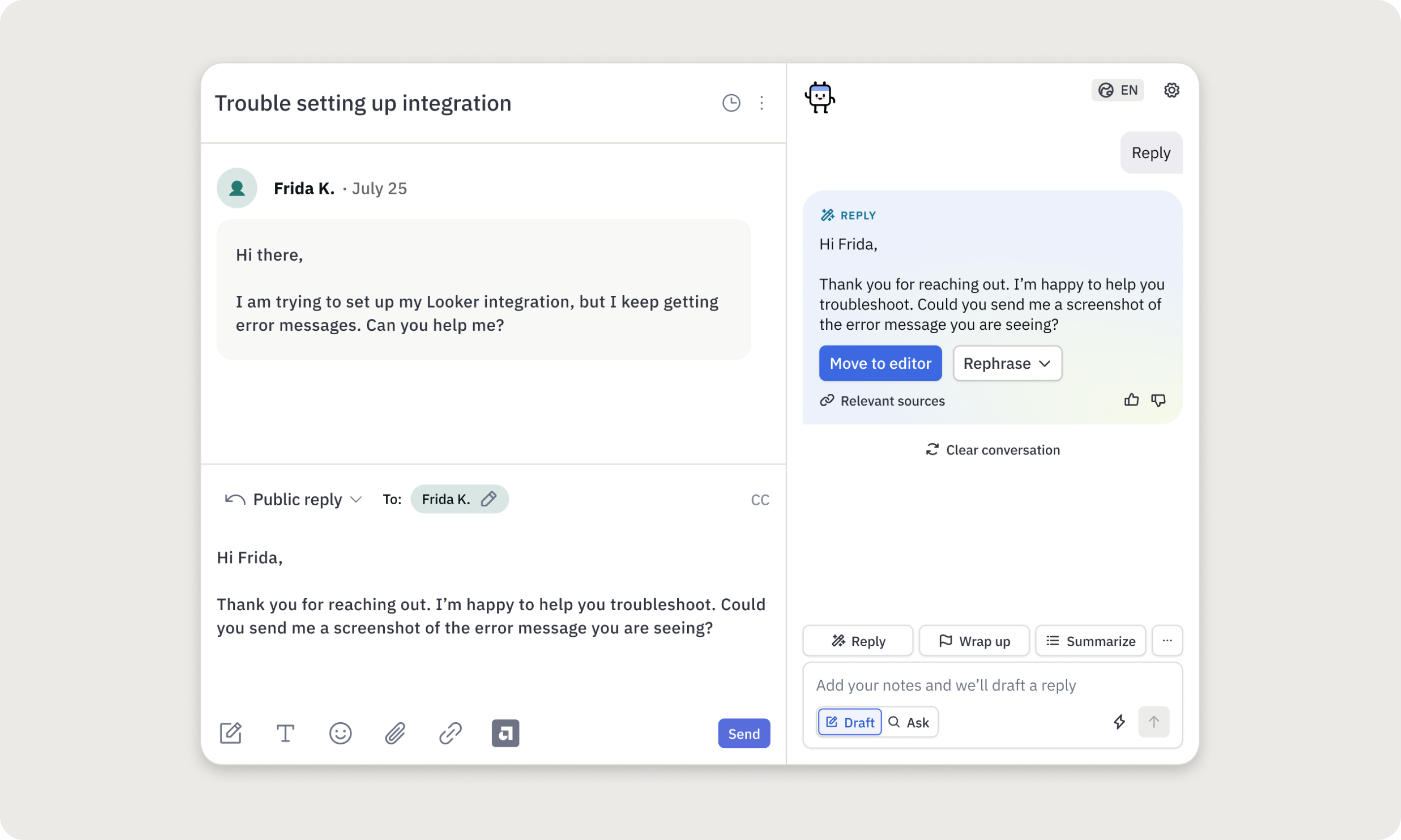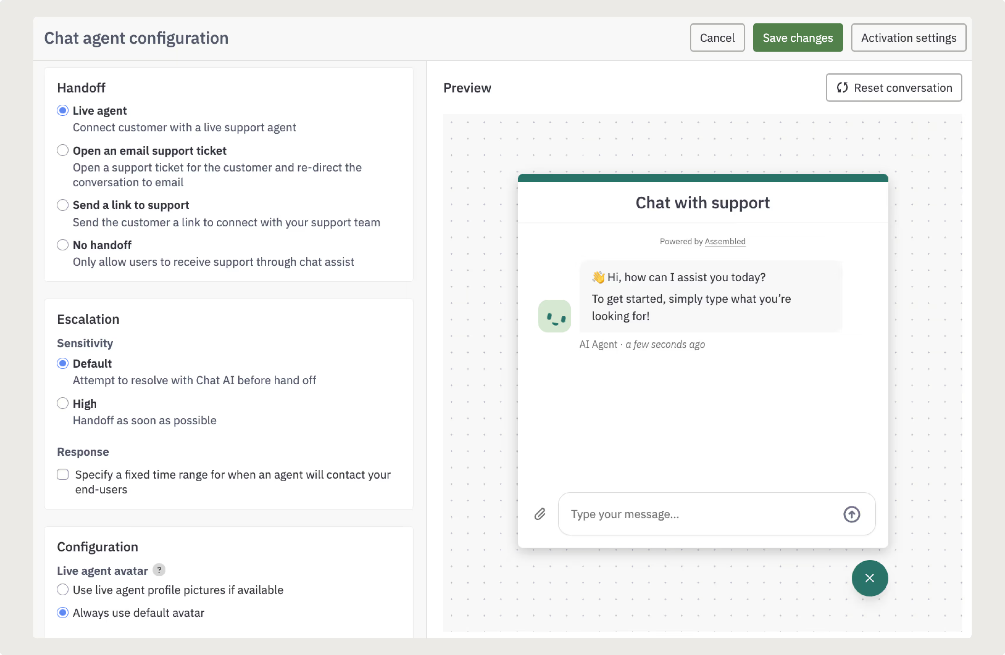 I'm scraping the barrel here, but my only challenge with assembled is that we need to integrate to Zendesk, and there are some limitations needing to use the API Sunshine Conversations. Like knowing how long a wait time would be to get a live agent, or having more knowledge had this been a native product. Review collected by and hosted on G2.com.