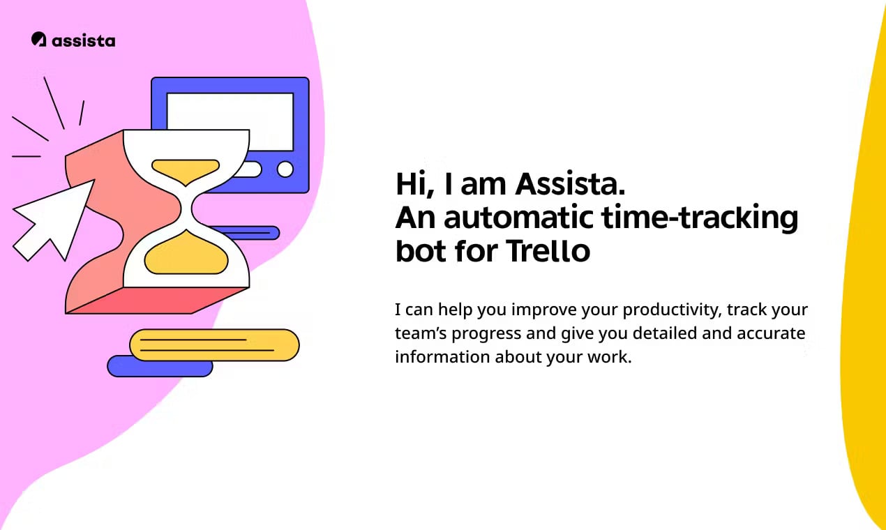 Assista Demo - Assista + Trello = Time tracking bot that helps users track team members' progress and activities across tasks/projects in Trello.